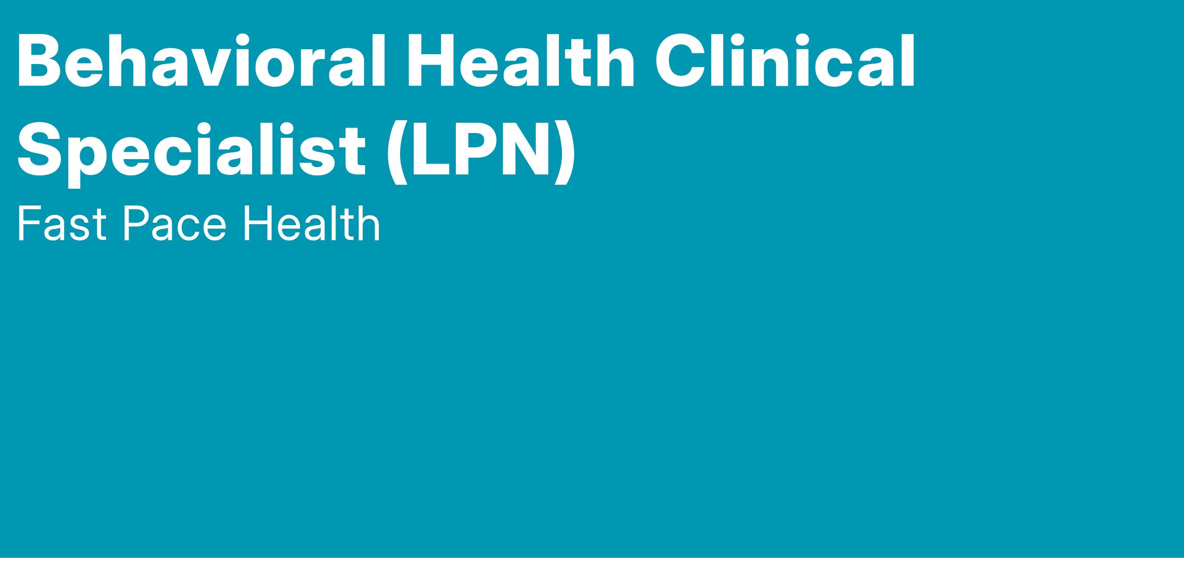 Fast Pace Health strives to provide a best in class patient experience in every interaction. We are seeking a highly-skilled, experienced Behavioral Health Clinical Specialist (LPN or RN) to join our growing team. Our ideal candidate will be deeply committed to nurturing our Fast Pace mission of teamwork, communication, empowerment and quality care in a friendly and encouraging environment.
