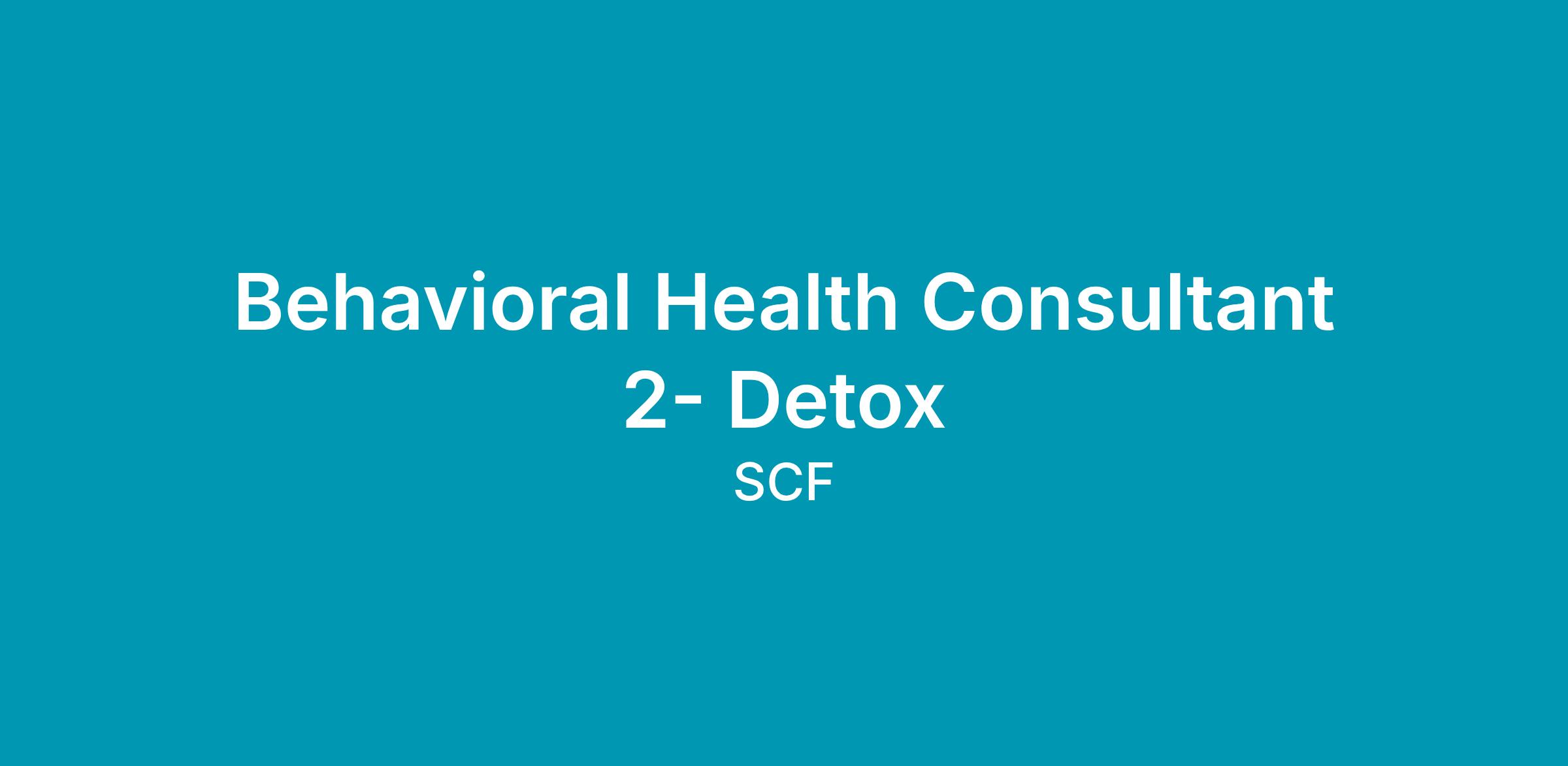 The Southcentral Foundation (SCF) Behavioral Health Consultant is responsible for working with customer-owners who self-refer or are referred by a provider to recognize and address psychological symptoms and conditions using the bio-psychosocial model.