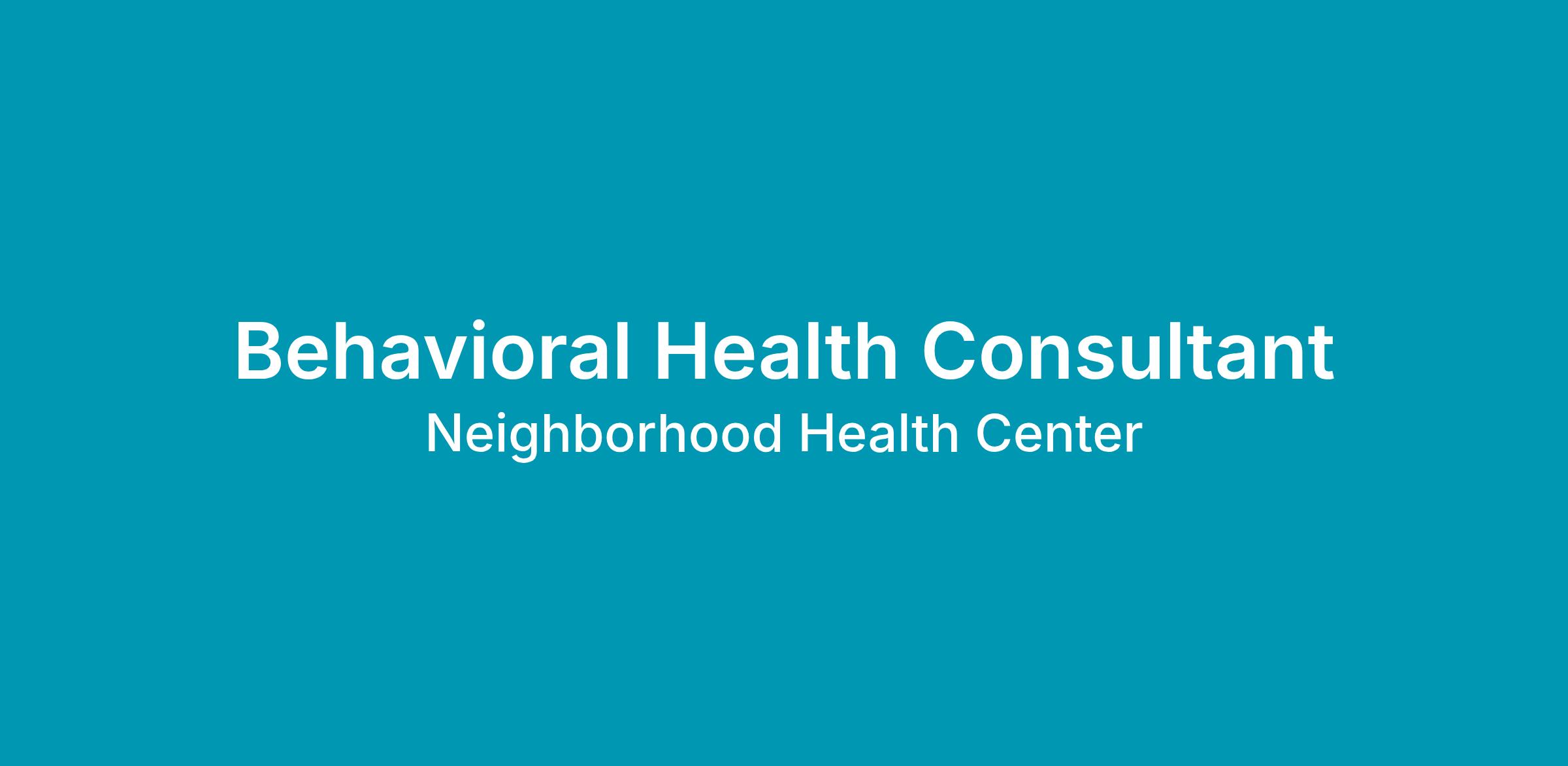 Job Title: Behavioral Health Consultant