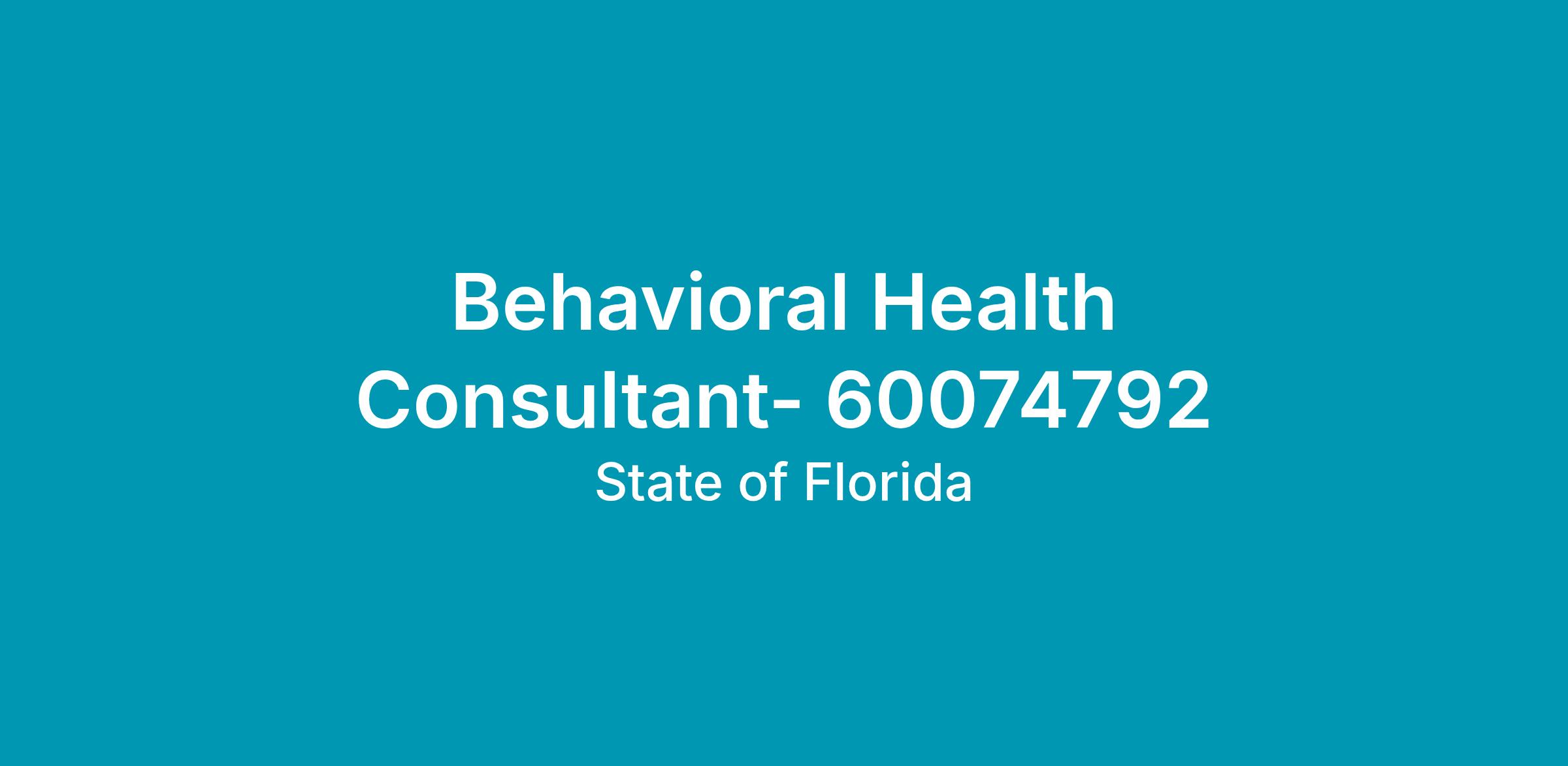Working Title: BEHAVIORAL HEALTH CONSULTANT- 60074792