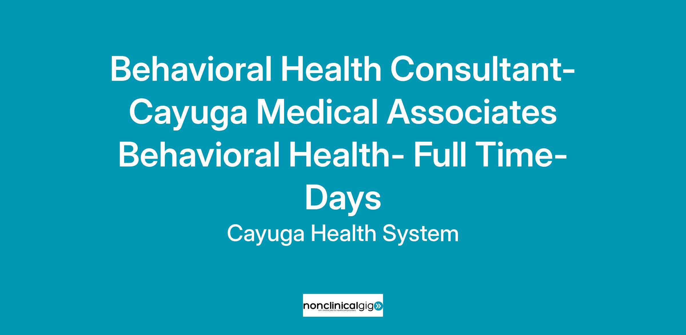 Behavioral Health Consultant- Cayuga Medical Associates Behavioral Health- Full Time- Days