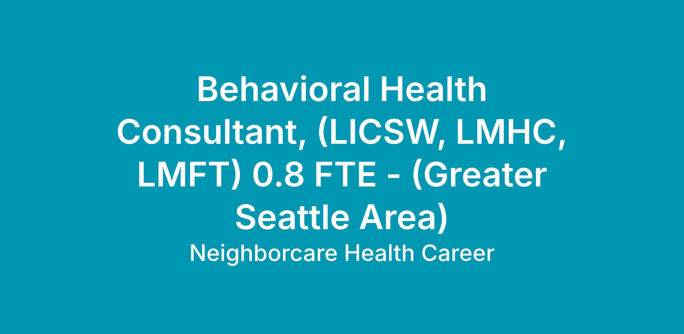 The primary care Behavioral Health Consultant (BHC) provides behavioral health services within a multidisciplinary primary care medical team. The BHC works with the other health care providers at their clinic to identify and manage patients with mental health, substance use, and health behavior concerns. Activities include the provision of evidence-based behavioral interventions, real-time consultation with providers, and brief behavioral health assessments. The BHC works in partnership with other team members to increase patient access to behavioral health and substance abuse services and achieve Neighborcare’s Mission, Guiding Principles and Goals.