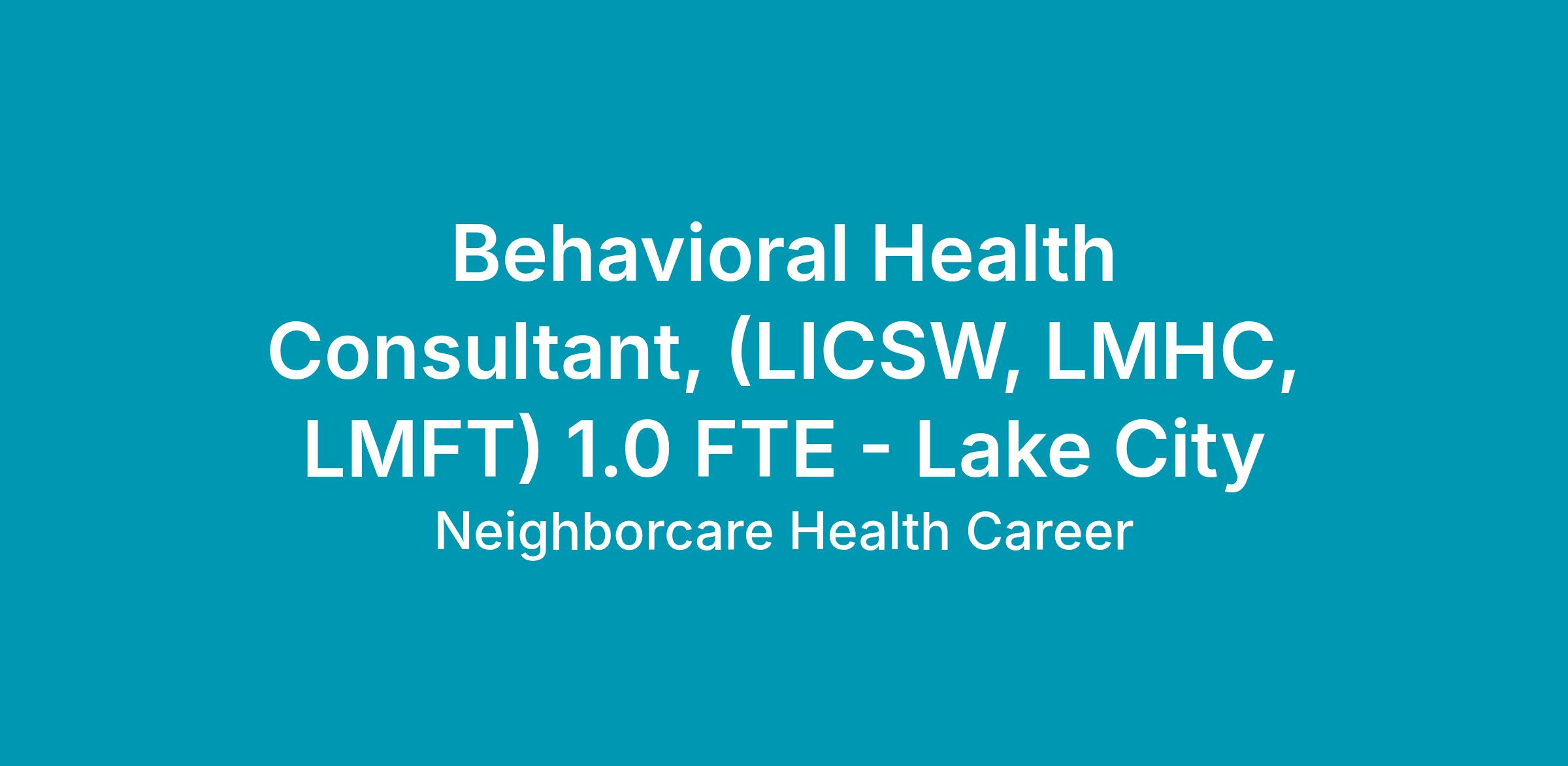 Behavioral Health Consultant, (LICSW, LMHC, LMFT) 1.0 FTE - Lake City