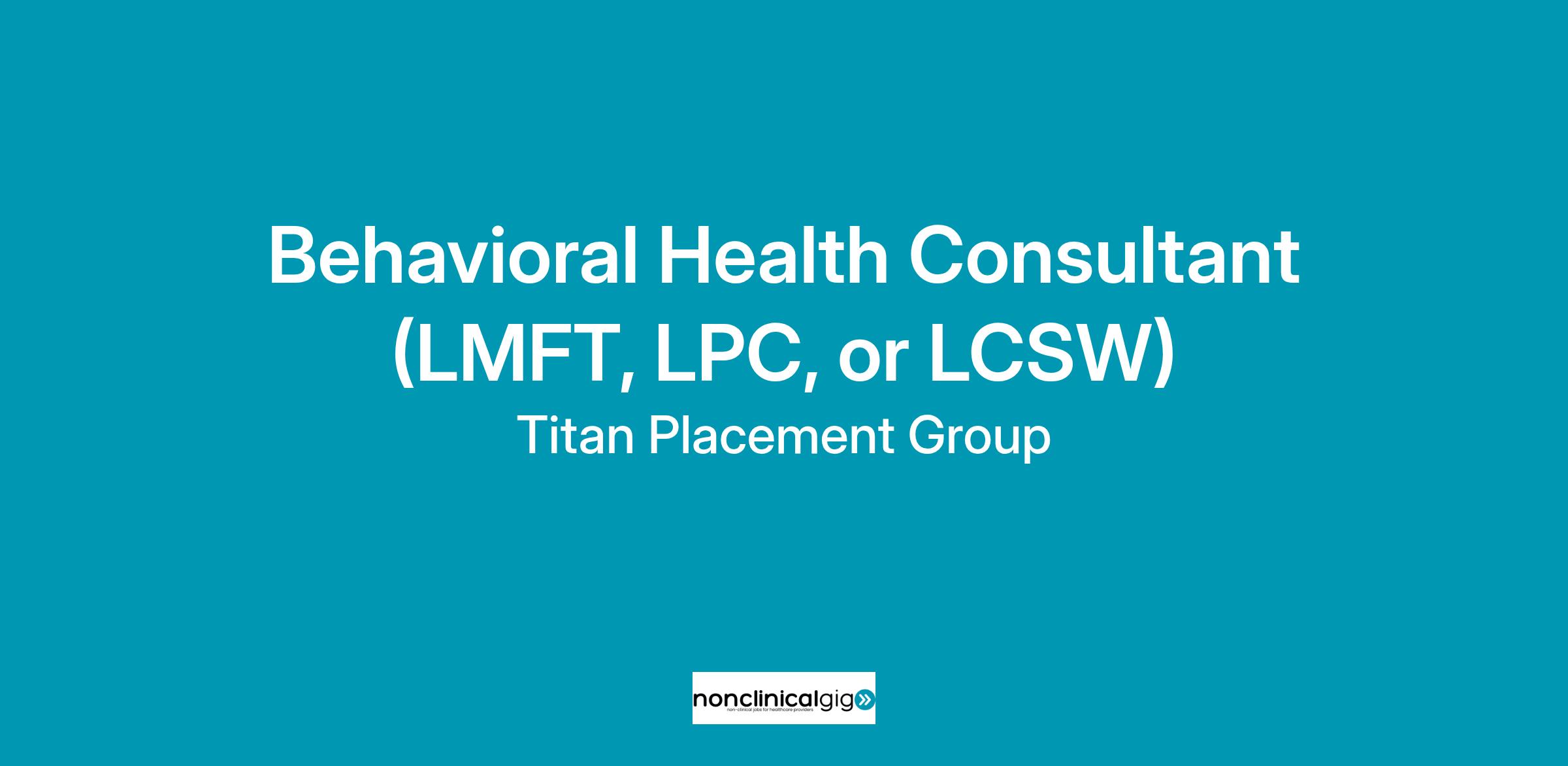 Behavioral Health Consultant (LMFT, LPC, or LCSW)