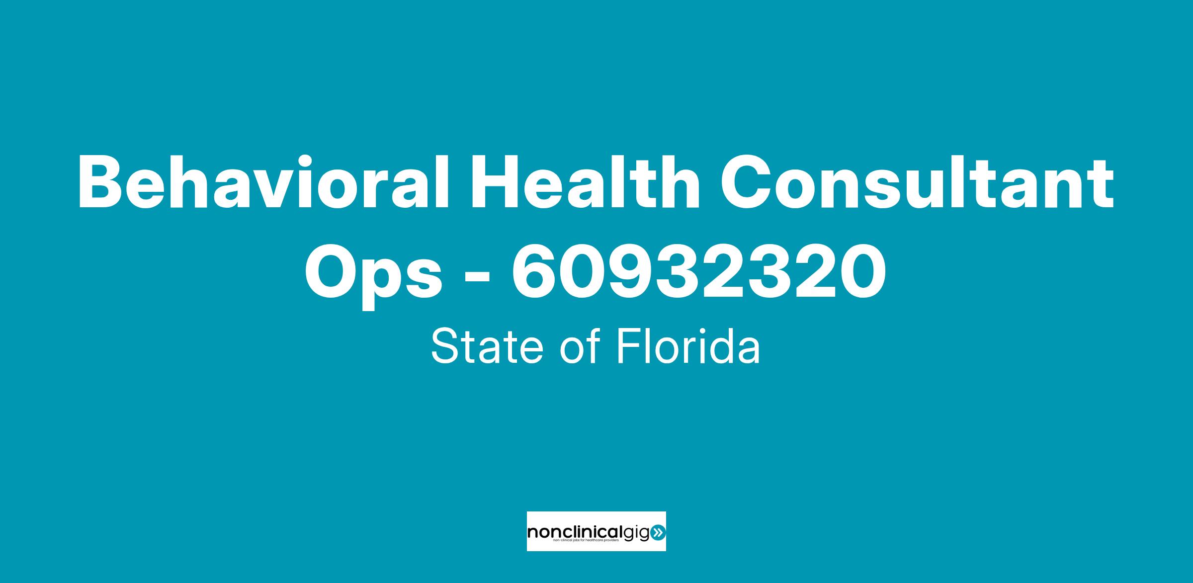 Working Title: BEHAVIORAL HEALTH CONSULTANT OPS - 60932320