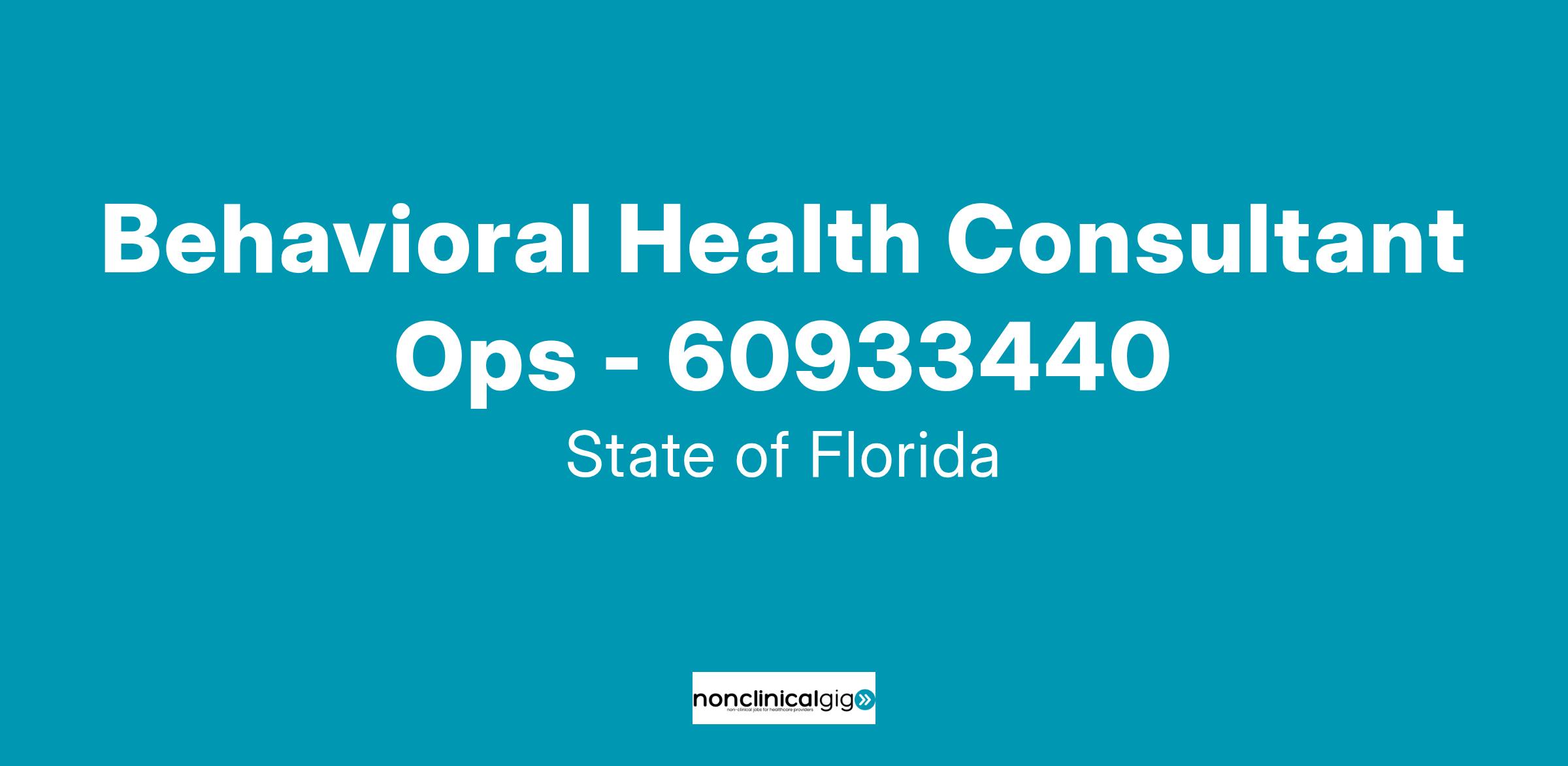 Job Title: Behavioral Health Consultant – OPS– 60933440