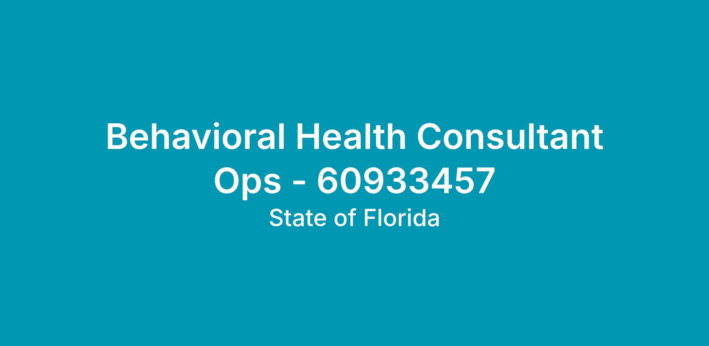 Job Title: Behavioral Health Consultant – OPS– 60933457
