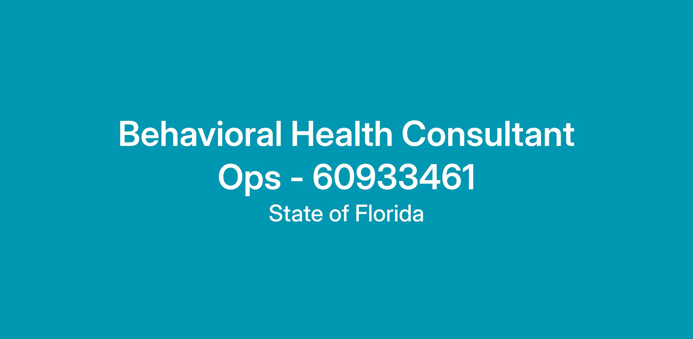 Working Title: BEHAVIORAL HEALTH CONSULTANT OPS - 60933461