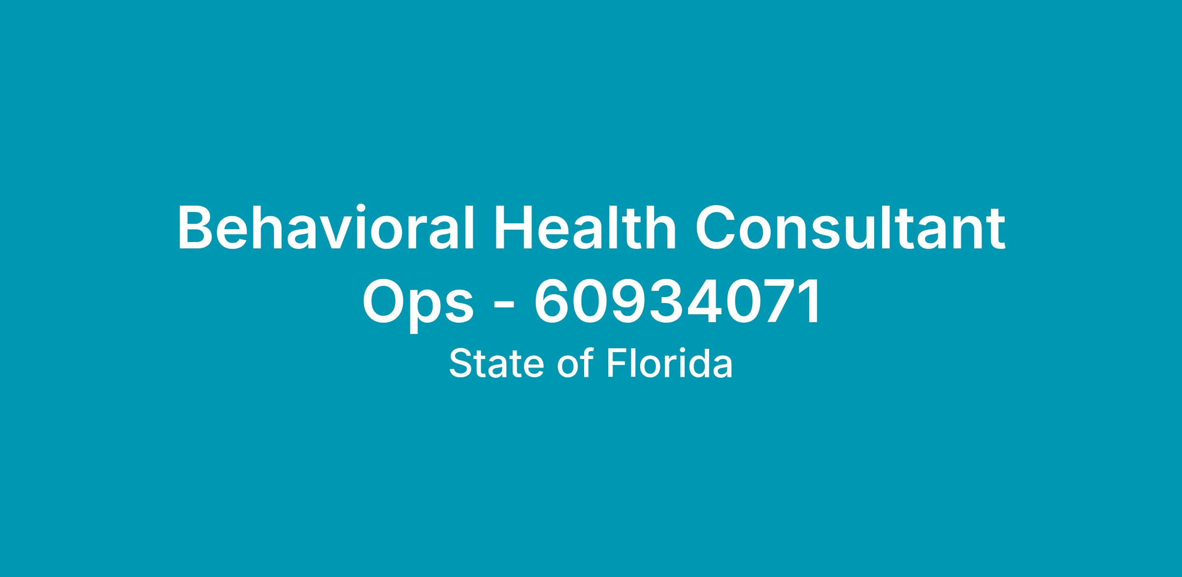 Working Title: BEHAVIORAL HEALTH CONSULTANT OPS - 60934071