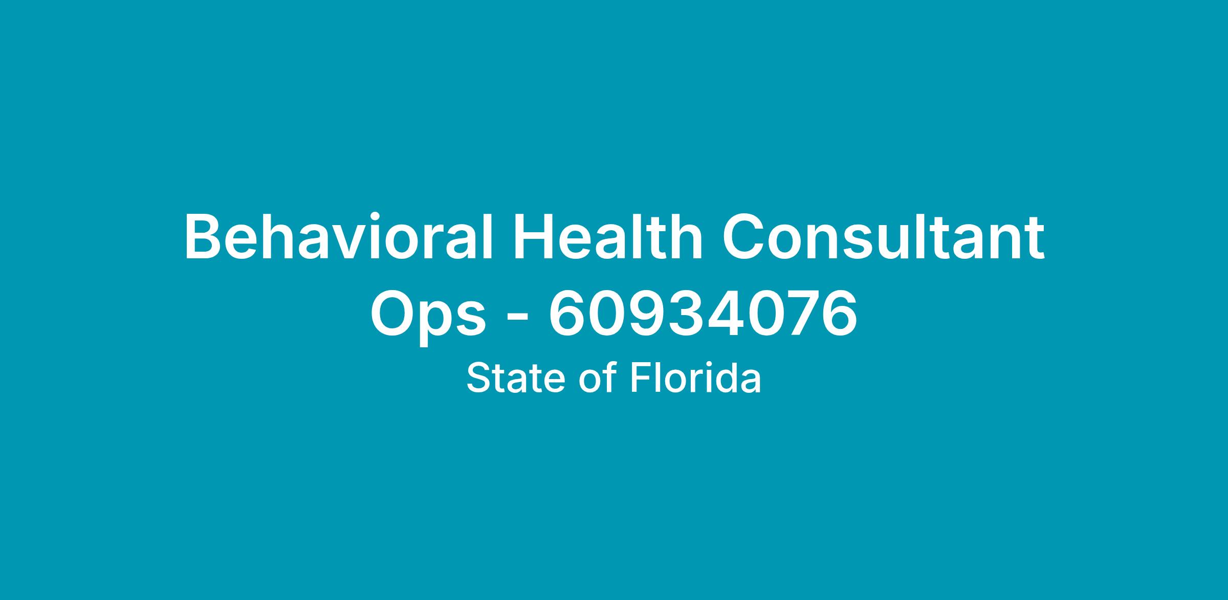 Job Title: Behavioral Health Consultant – OPS– 60934076