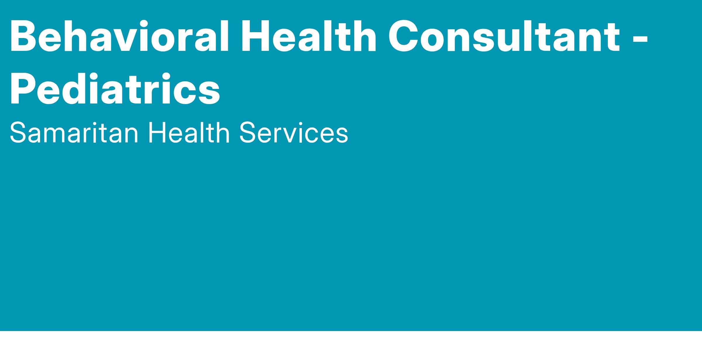 Samaritan Health Services has an opportunity for a Behavioral Health Consultant (PsyD/PhD, LCSW, LPC, LMFT)