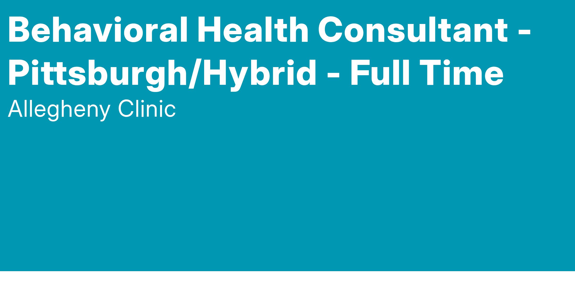 Behavioral Health Consultant - Pittsburgh/Hybrid - Full Time