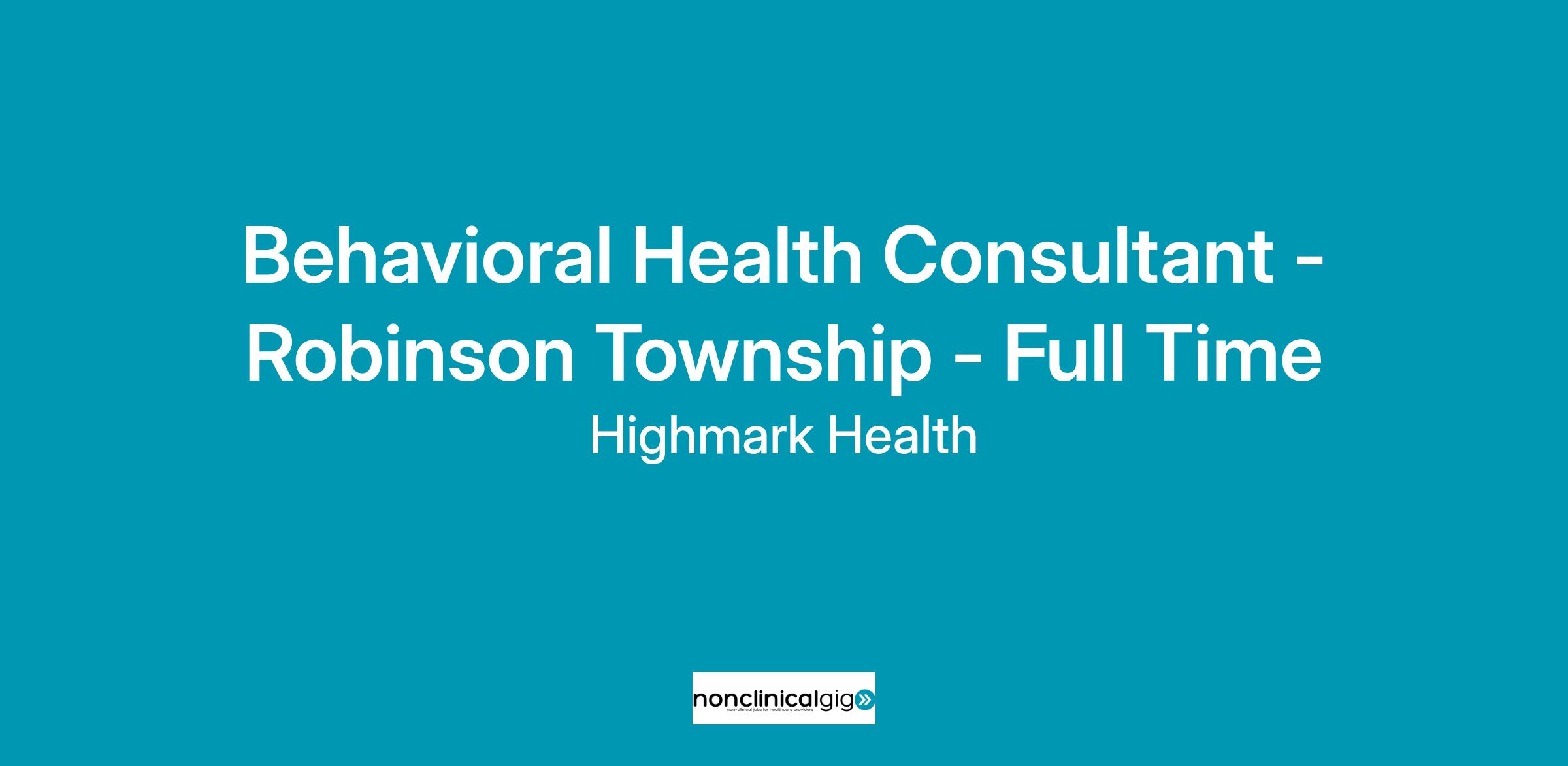 Behavioral Health Consultant - Robinson Township - Full Time