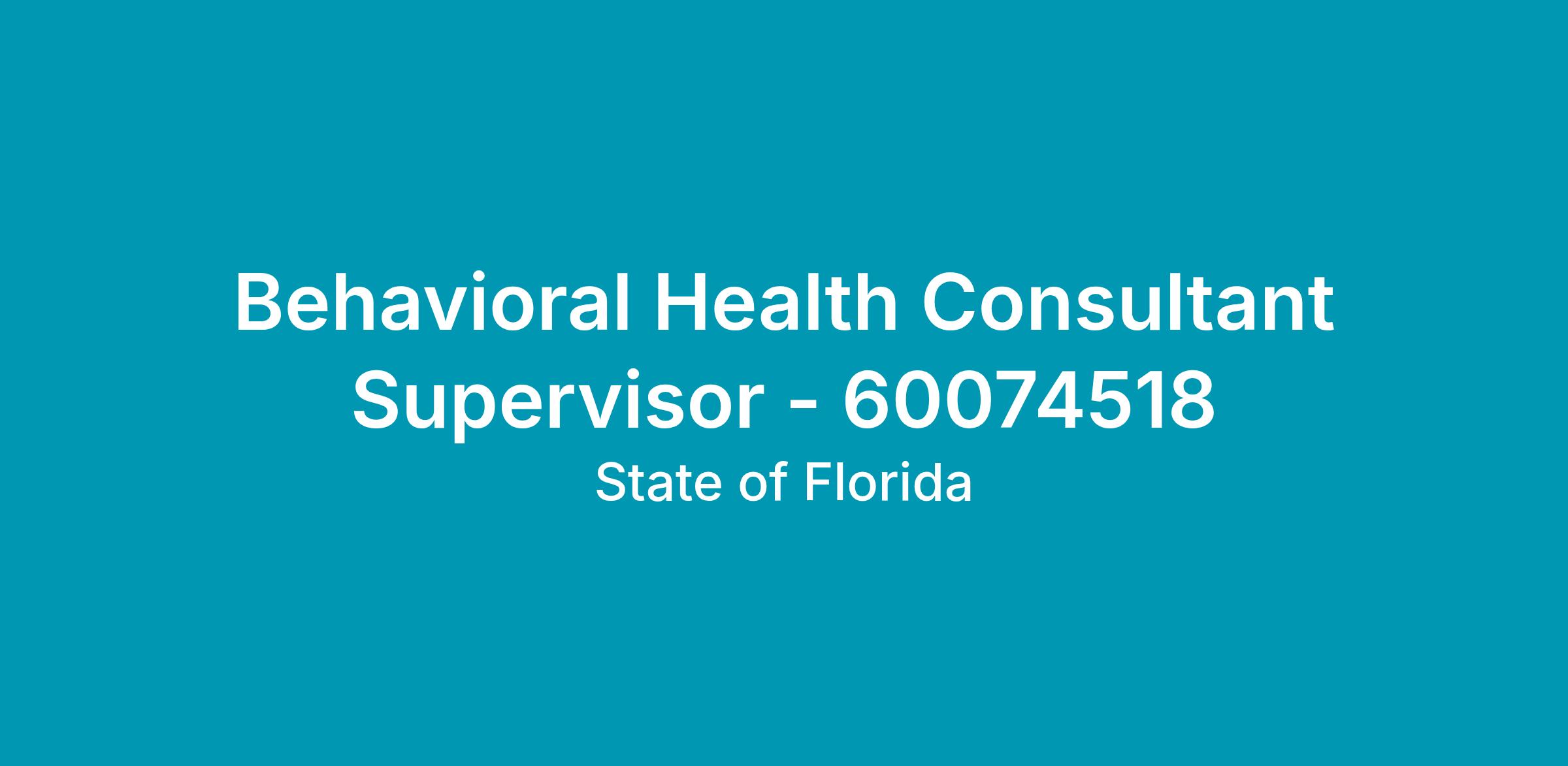 Working Title: BEHAVIORAL HEALTH CONSULTANT SUPERVISOR - 60074518