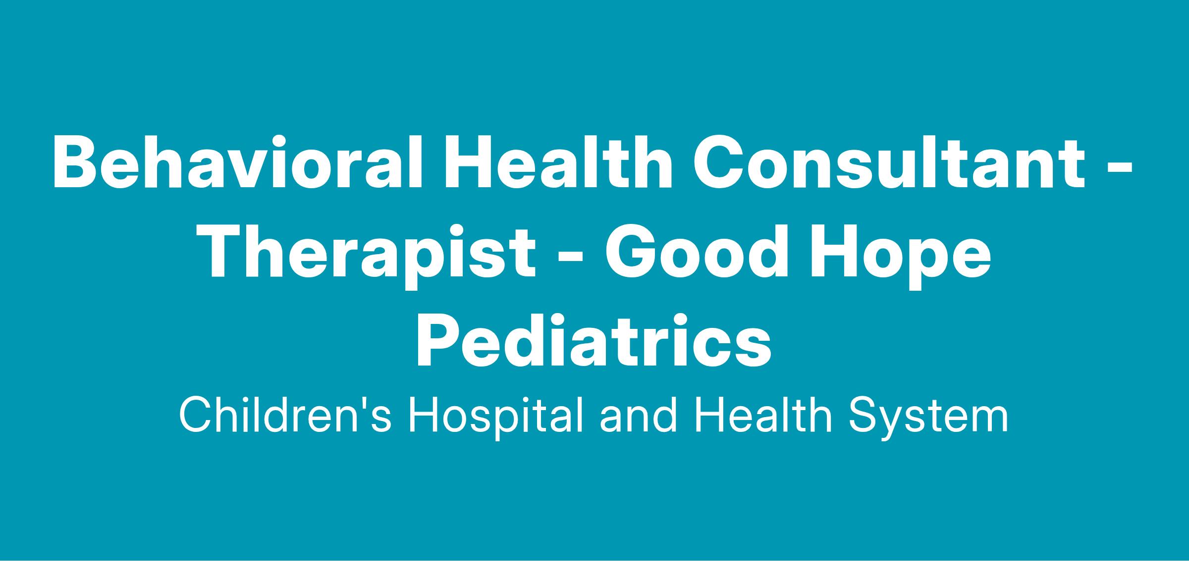Behavioral Health Consultant - Therapist - Good Hope Pediatrics
