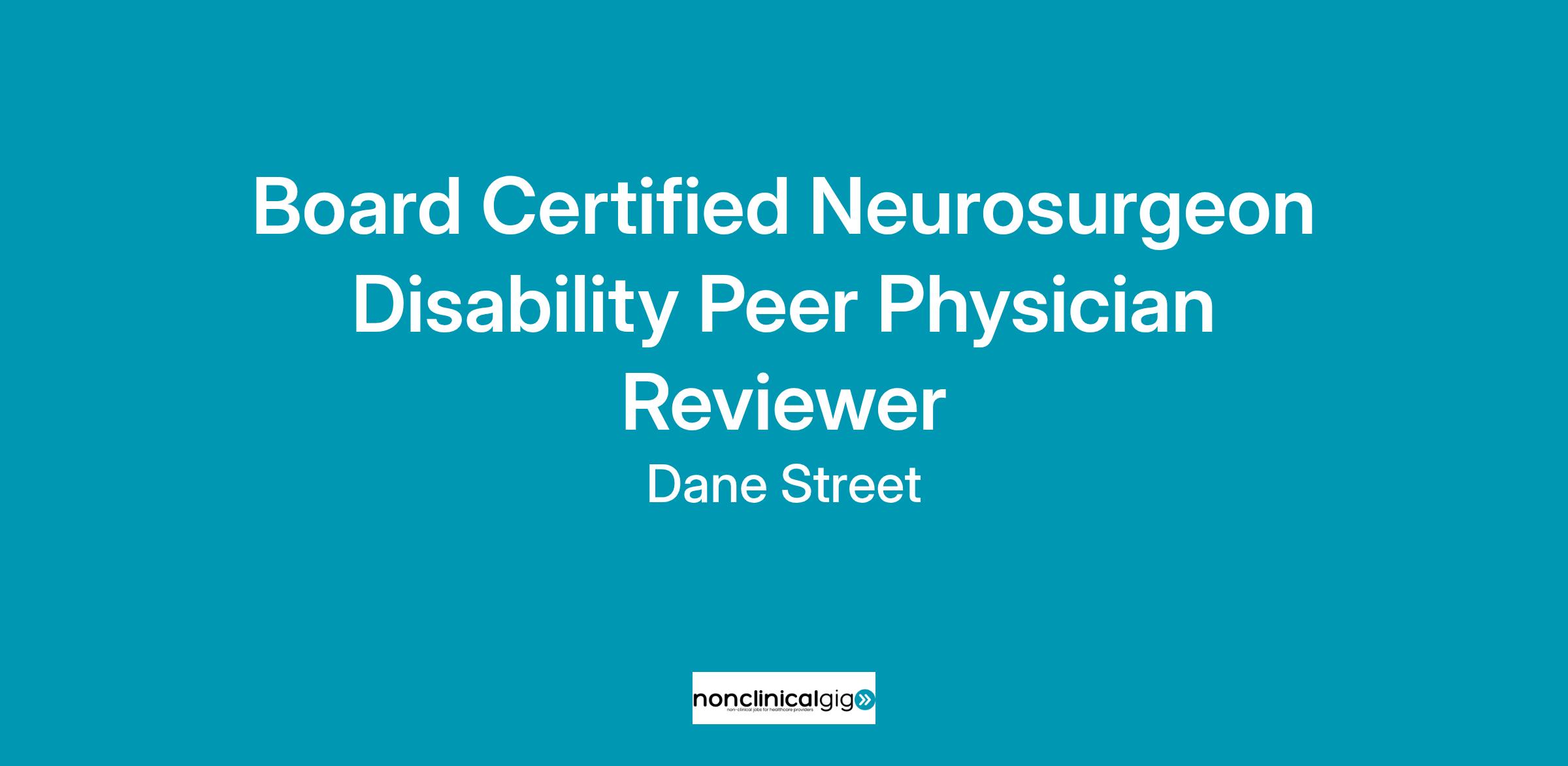 DescriptionDane Street is seeking Board Certified Neurosurgeon to join our team for the Disability Peer Review division. This remote position is a great opportunity for physicians looking to work flexibly and contribute to the assessment of disability claims related to addiction psychiatry. Our independent contract reviewers (1099) are compensated on a per-case basis, allowing for personalized caseloads that fit your schedule.