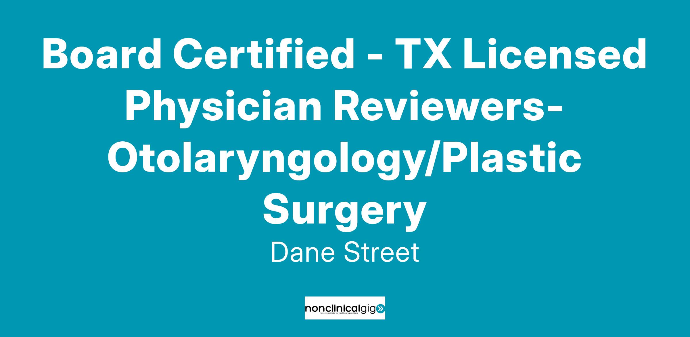 Board Certified - TX Licensed Physician Reviewers-Otolaryngology/Plastic Surgery