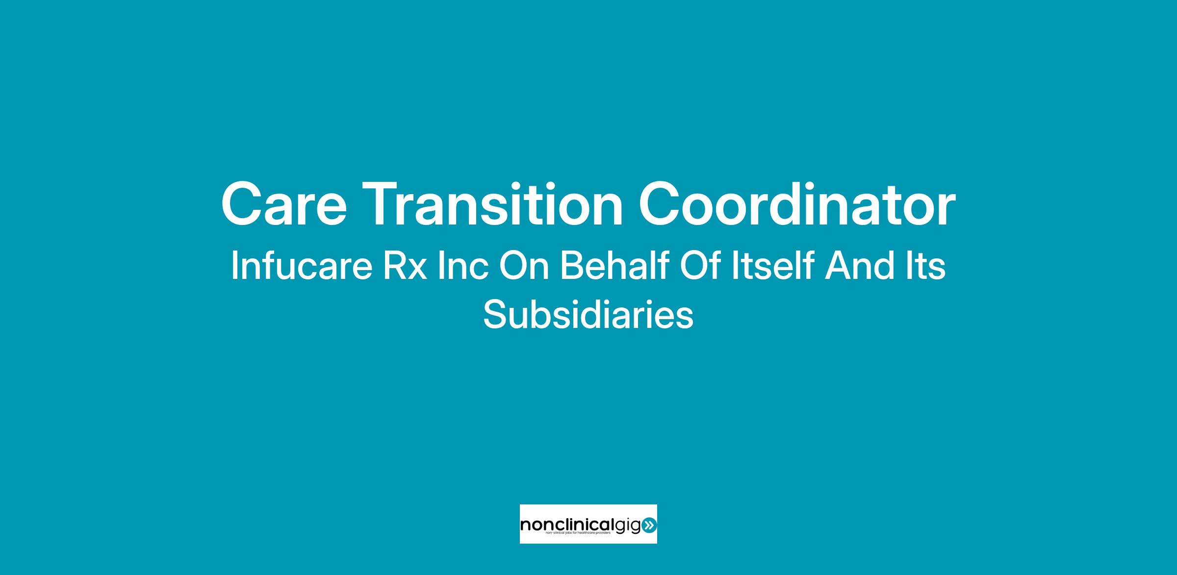 As a Care Transition Coordinator, you play a key role in helping patients safely and seamlessly transition from hospital care to home infusion therapy. This position requires excellent relationship-building, patient education, and care coordination skills. The Care Transition Coordinator works closely with hospital discharge planners, physicians, and the InfuCare Rx team to ensure patients receive timely, appropriate, and high-quality infusion care at home. This role reports to the Area Sales Director and requires some travel to hospitals, clinics, and community partners.