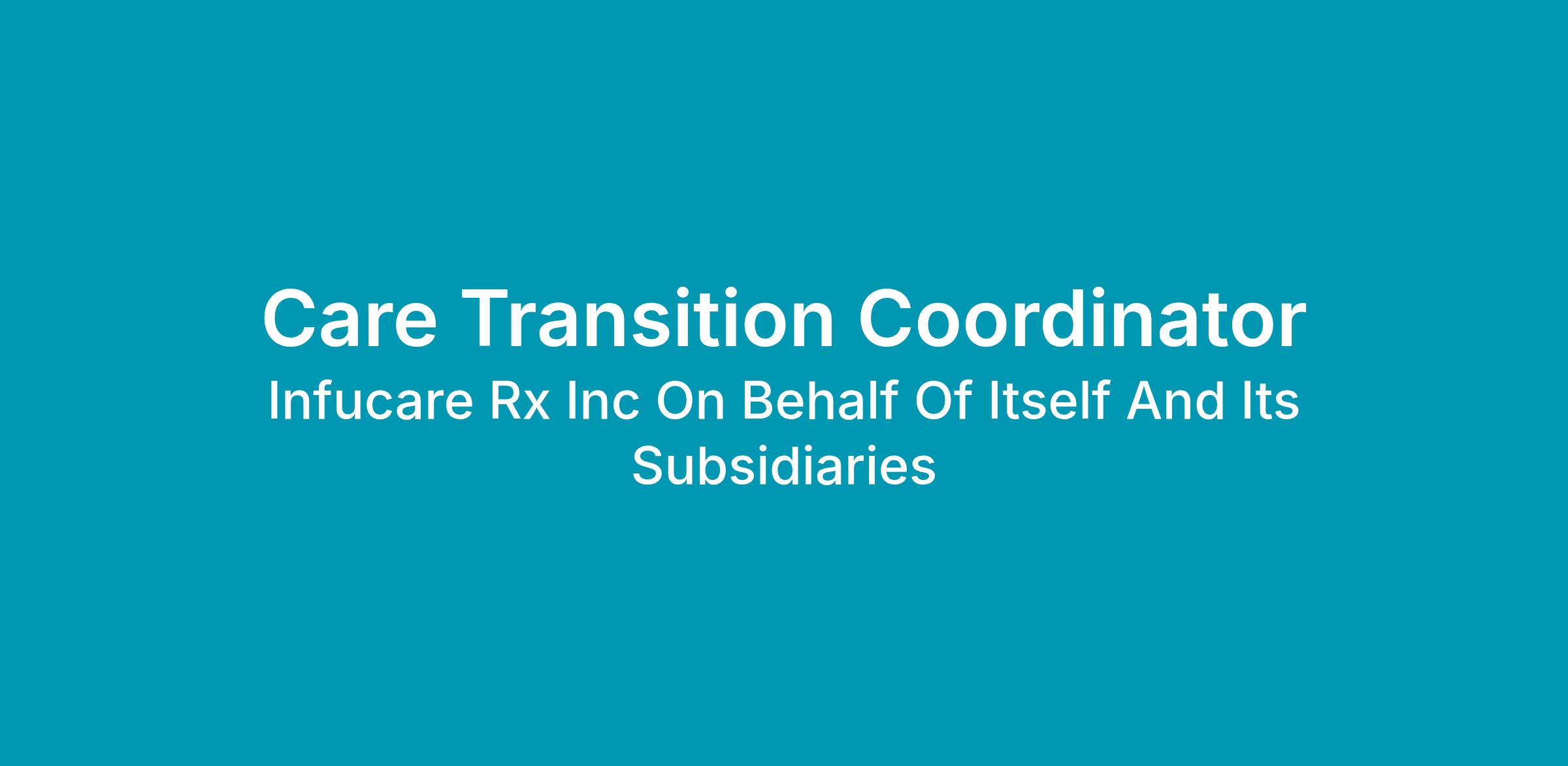 As a Care Transition Coordinator, you play a key role in helping patients safely and seamlessly transition from hospital care to home infusion therapy. This position requires excellent relationship-building, patient education, and care coordination skills. The Care Transition Coordinator works closely with hospital discharge planners, physicians, and the InfuCare Rx team to ensure patients receive timely, appropriate, and high-quality infusion care at home. This role reports to the Area Sales Director and requires some travel to hospitals, clinics, and community partners.