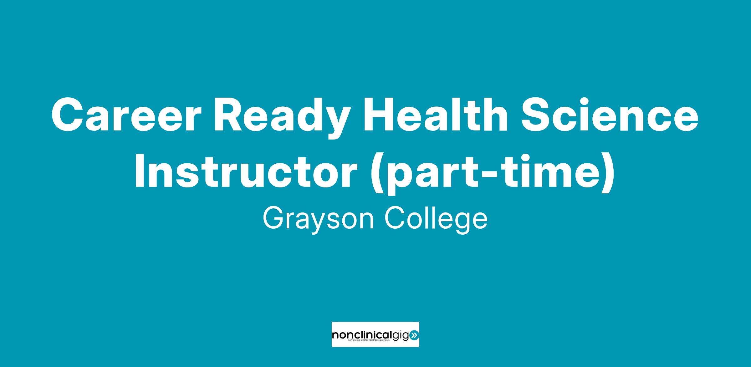 Designs, instructs and evaluates various health science courses (Clinical Medical Assistant, Certified Nurse Aide, Patient Care Technician, Phlebotomy Technician, EKG Technician and Basic Life Support) for the Career Ready instructional division at Grayson College. Instructs diverse populations, including high school cohorts and in multiple formats including online and hybrid configuration. Applicants need to have some flexibility in teaching hours/days.