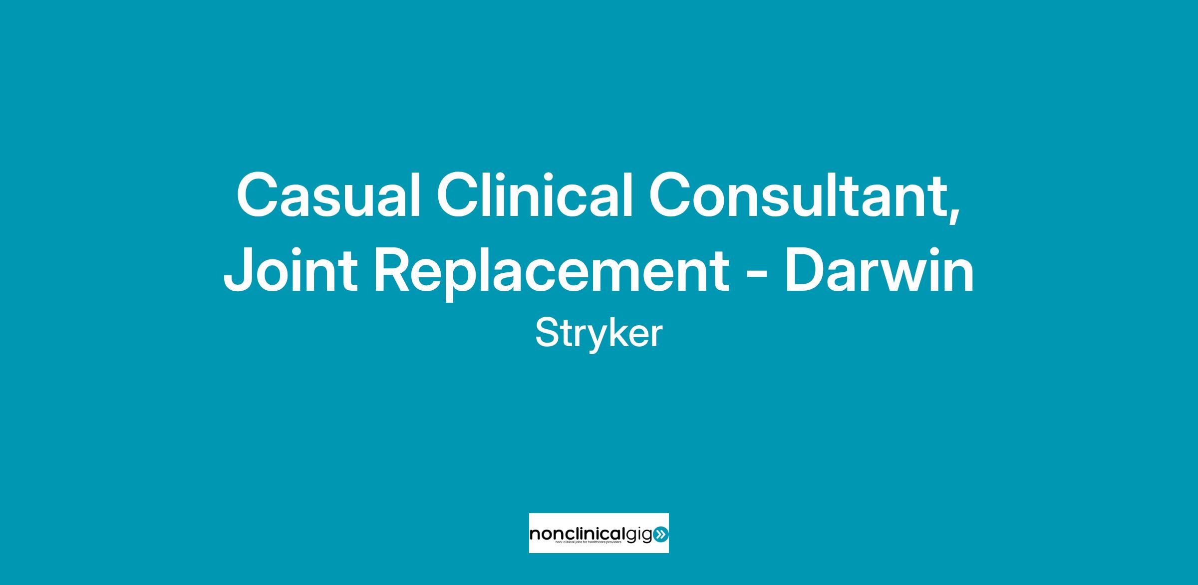 We are currently seeking a Clinical Specialist to join our Joint Replacement team based in Darwin. You will provide clinical and technical support to orthopaedic surgeons, nurses and hospital staff.