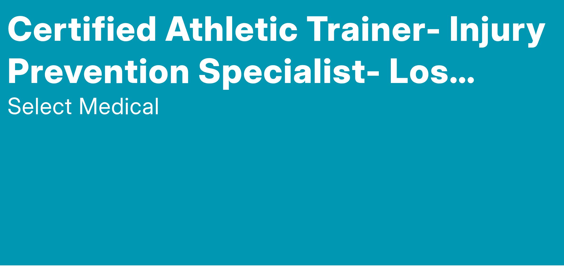 Select Physical Therapy is currently seeking a full-time Injury Prevention Specialist/ATC for an industrial setting. This is an onsite contract with a large airline at LAX. FT staff of 7 Certified Athletic Trainers with additional PRN Athletic Trainers. Center operates 7 days/wk. and operates as a half fitness, half OSHA First Aid location for all employees of the airline. We just moved into a brand new, roughly 2000 sq. ft. facility with additional spaces in the works. This program is well established (10 years+) and supported by all stakeholders. Patient population is diverse ranging in age from 18-65 years old+. Various demographics and athletic/physical abilities. OSHA mandated First Aid care can range from musculoskeletal issues to general medical conditions, to acute trauma. There are also multiple preventative programs that have been developed and maintained onsite by our Injury Prevention Team that are ongoing and that the candidate will support as able. The FT, salaried WorkStrtaegies Specialist will also perform one day a week at the busy, 4000sq. Ft. Select-Los Angeles PT Clinic performing testing and assisting with operations. The candidate will directly report to the Site Supervisor, with additional assistance from the AT Leads as needed. 1-2 years of AT experience is recommended due to the complexity and volume of cases seen at both sites. Ability to cross-train and support additional onsite contracts and/or WorkStrategies opportunities in the Southern CA area are also a possibility. Come and join our dynamic, progressive, and growing team at LAX and Select LA.