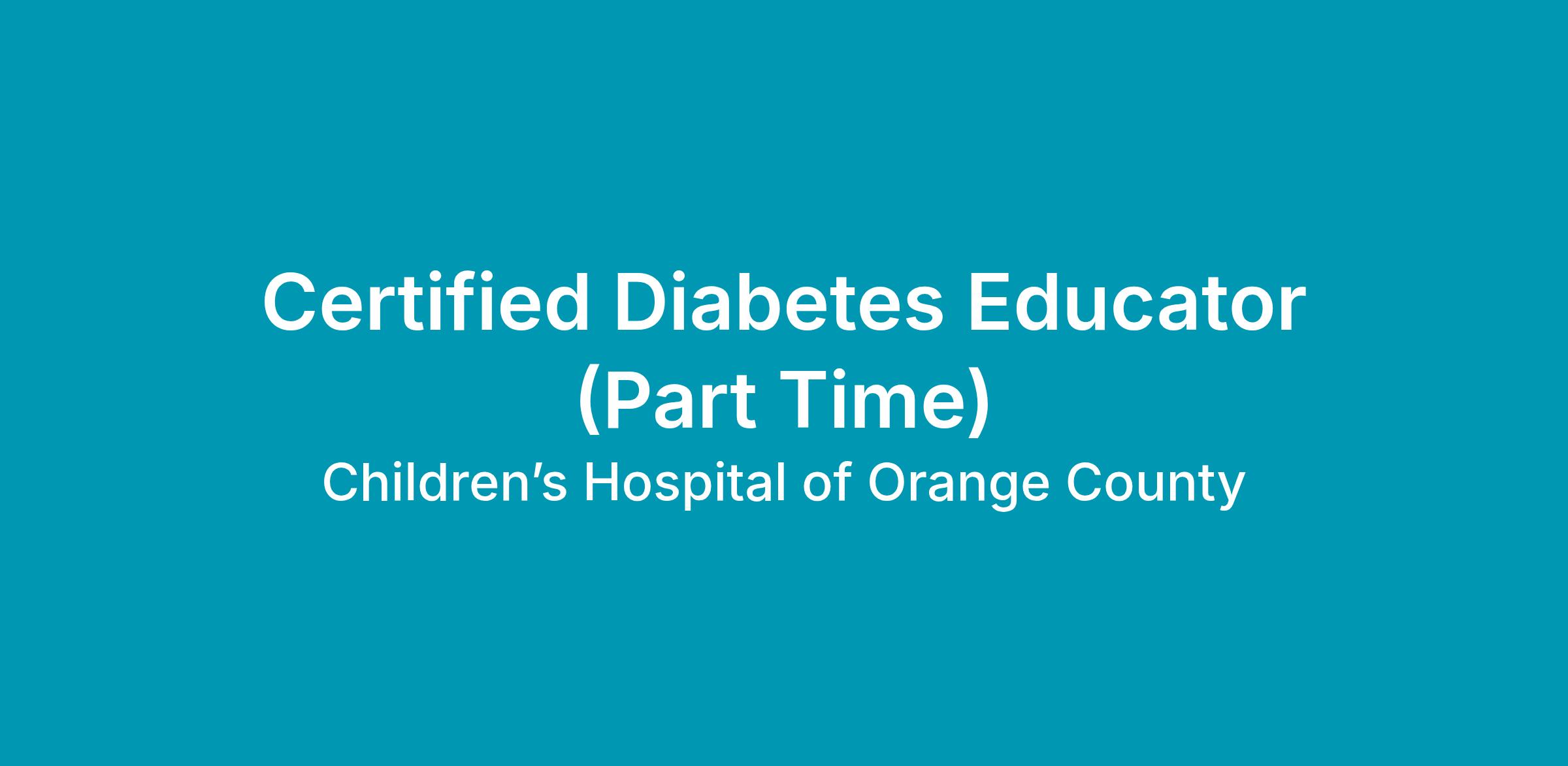 * Required: Basic Life Support (BLS); Registered Dietician or Registered Nurse -CA (RN); Certified Diabetes Educator; Pediatric Advanced Life Support (PALS) AND/OR Pediatric Emergency Assessment Recognition & Stability (PEARS) required within 90 days upon hire.
