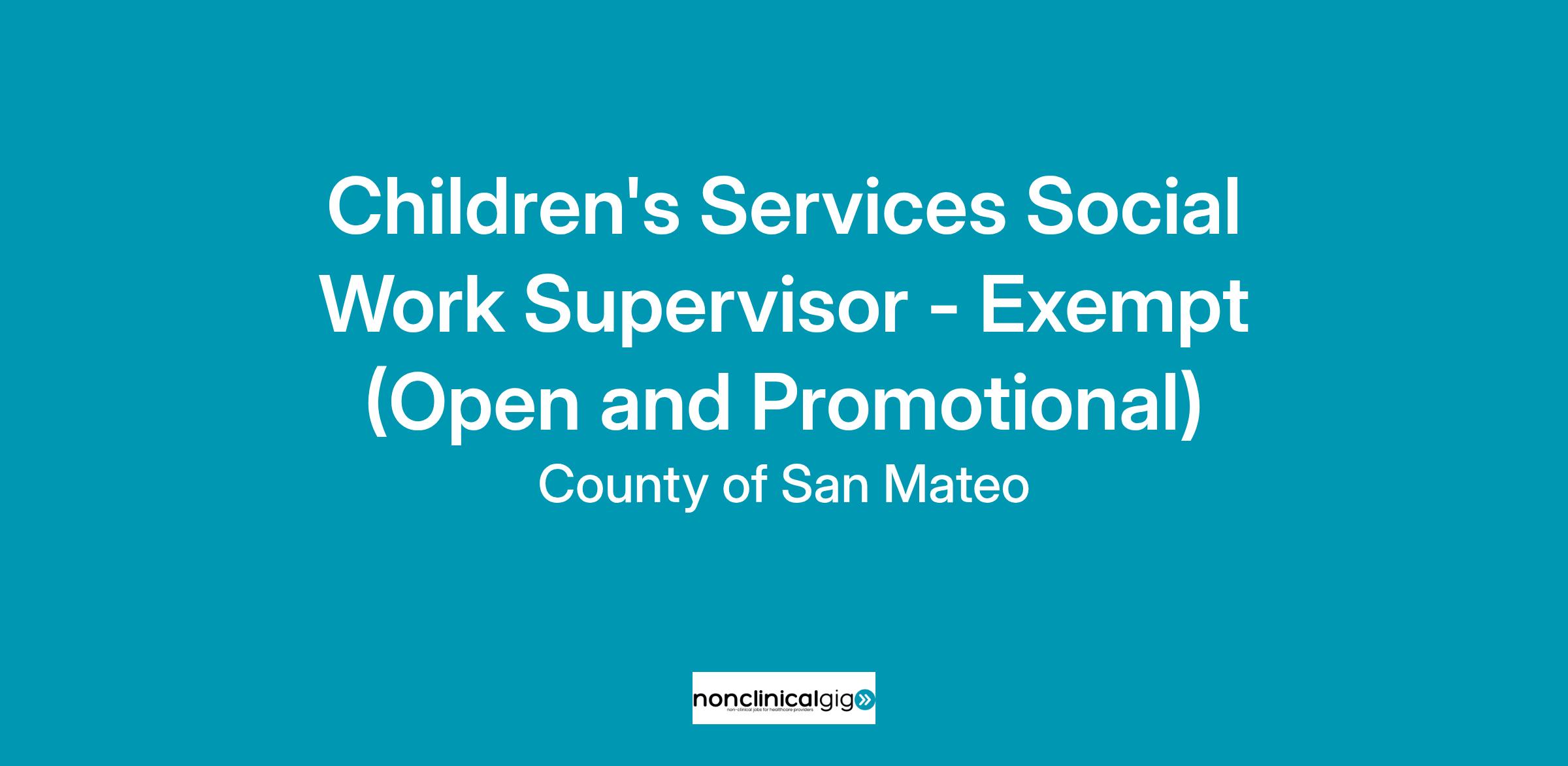 The County of San Mateo's Human Services Agency is seeking a well-qualified individual for the position of Children's Services Social Work Supervisor in the Children and Family Services Branch. The Children's Services Social Work Supervisor plans, assigns, reviews, evaluates the work of a unit of Children’s Services Social Workers, and provides direction to subordinate staff. Assignments may include, but not limited to, the following child welfare units: After Hours, Weekend, Intake/Screening, Emergency Response, Court Investigations, Court Officers, Family Maintenance & Reunification, Permanent Placement, AB12, Independent Living Program (ILP), Commercial Sexual Exploitation of Children (CSEC), Resource Family Approval, Adoptions, and/or Training. It is highly likely that the selected incumbent for this position will be assigned to Emergency Response.