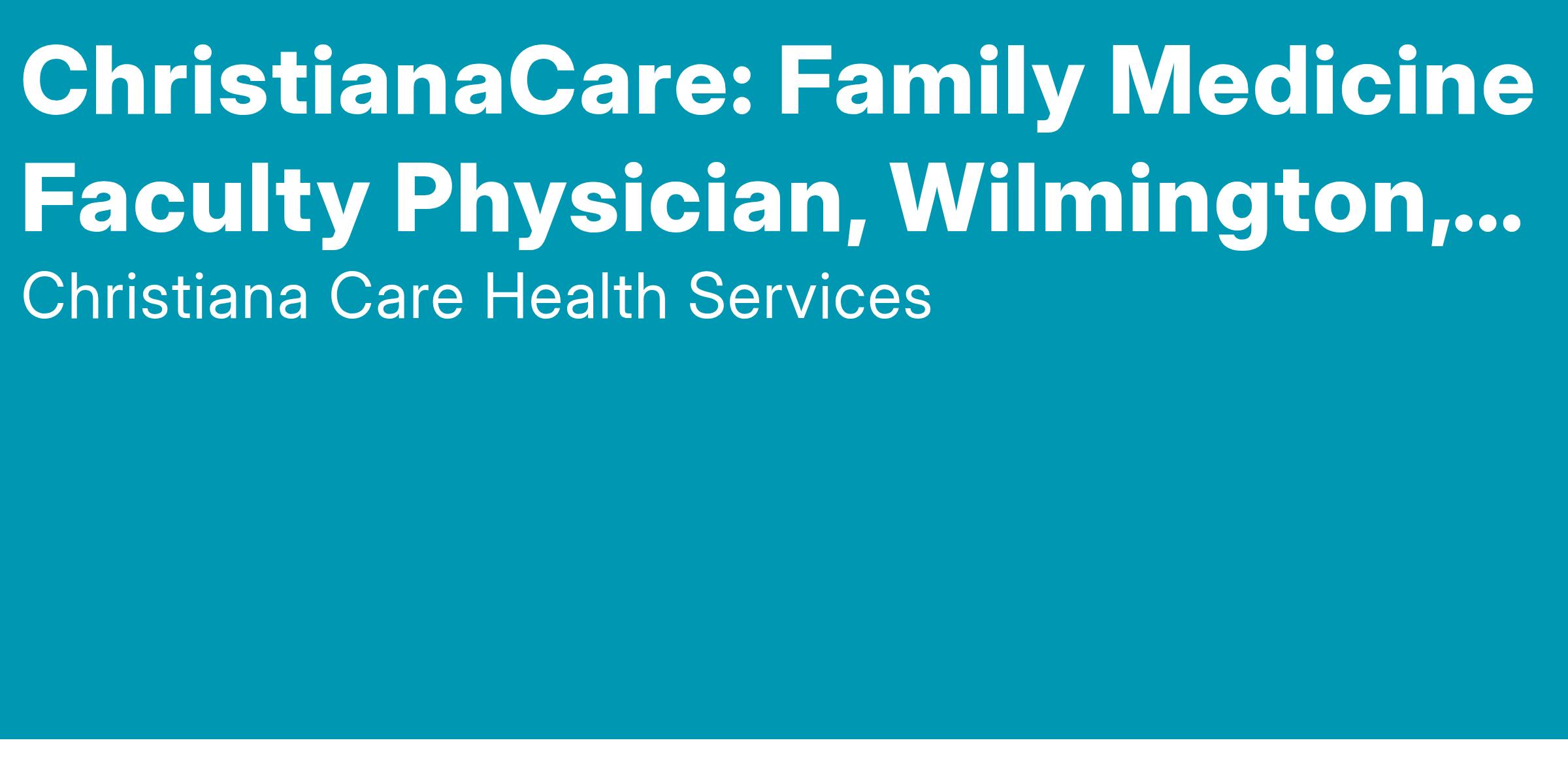 ChristianaCare, a nationally recognized leader in healthcare, is actively recruiting another outstanding faculty physician to join its growing Department of Family & Community Medicine