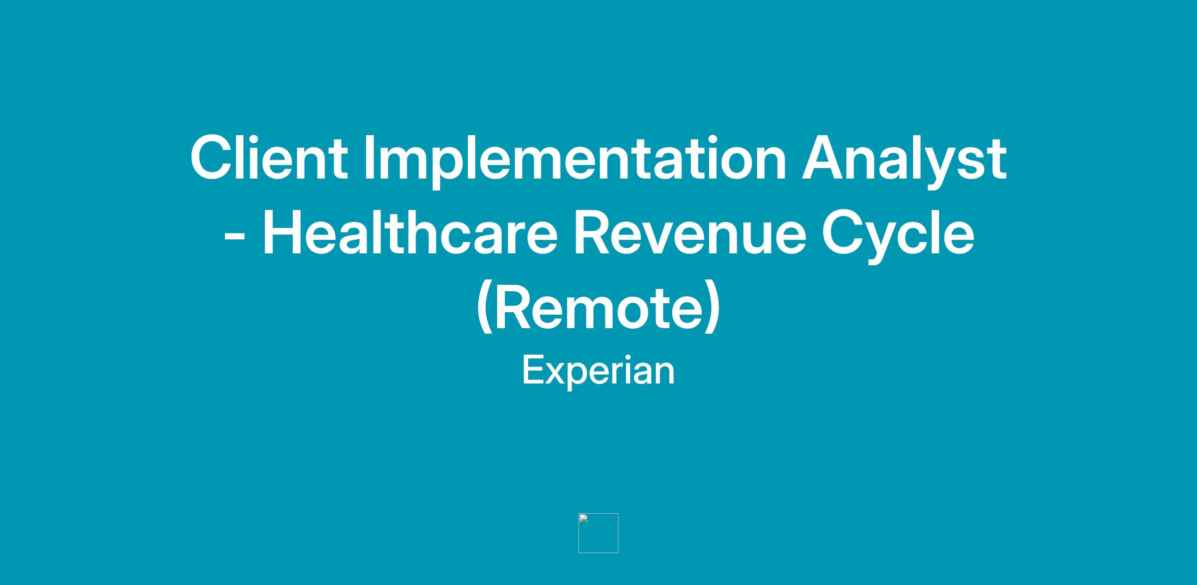 As our Client Implementation Business Analyst, Healthcare Revenue Cycle, you will report to Experian Health.