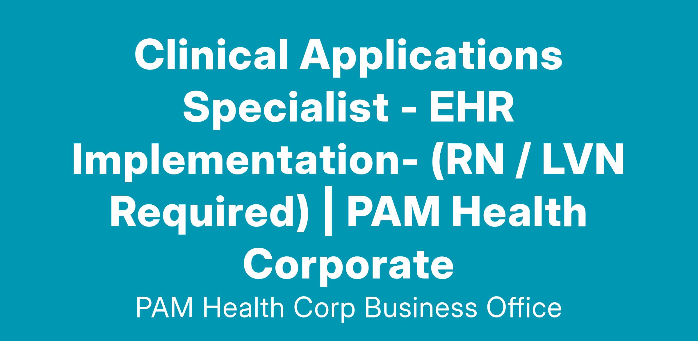 EHR Implementation and support experience REQUIRED.