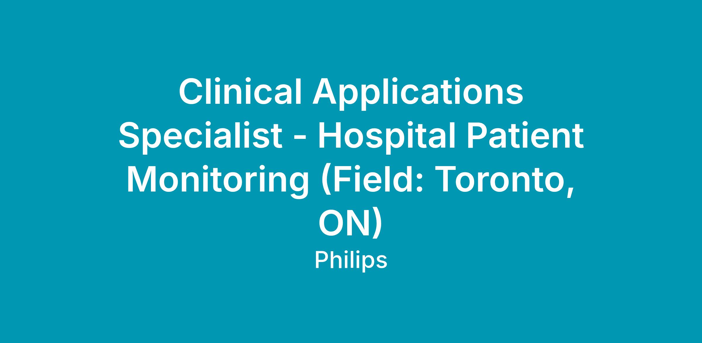 Clinical Applications Specialist - Hospital Patient Monitoring (Field: Toronto, ON)