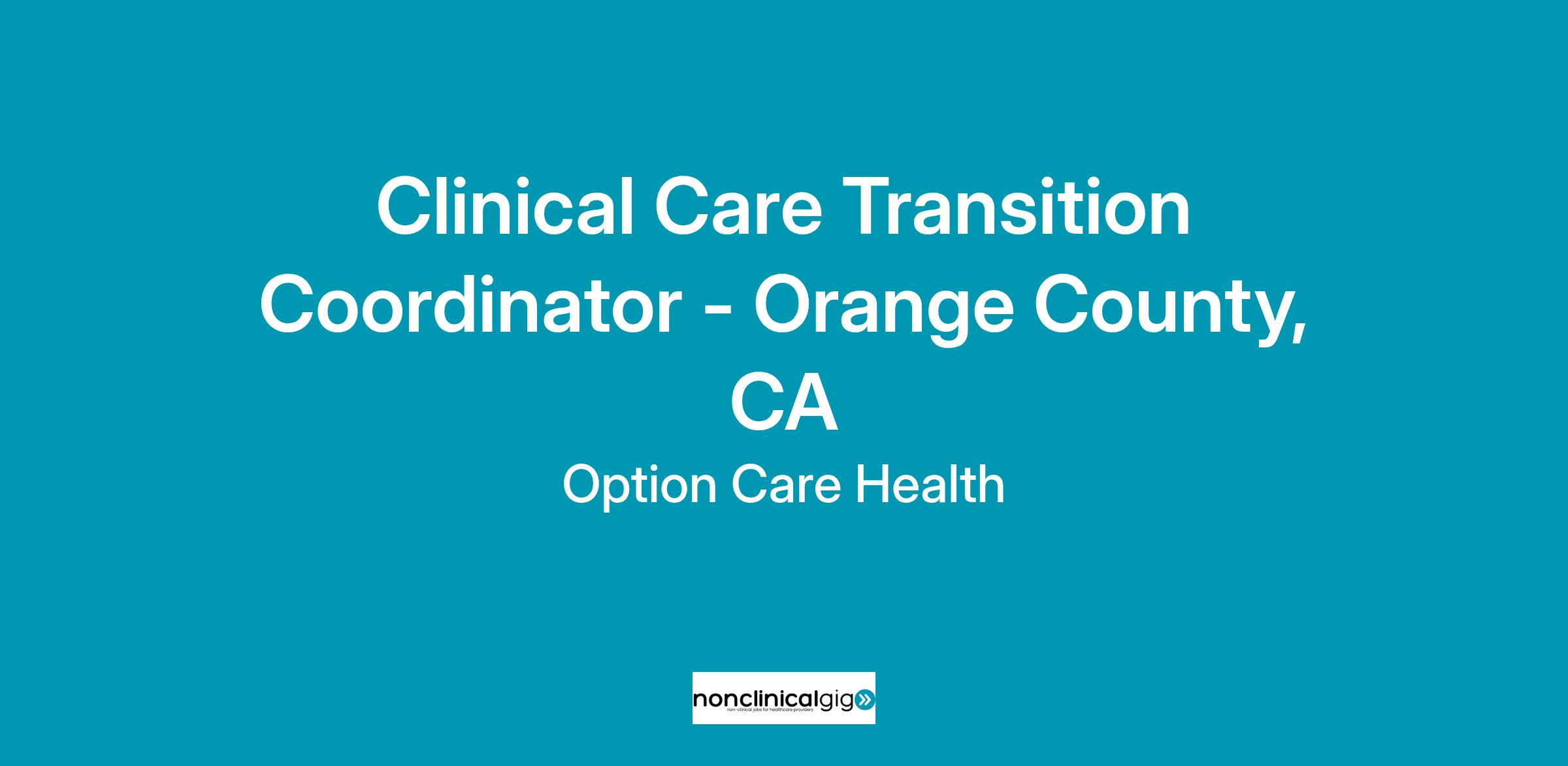 The Care Transition Coordinator is an experienced sales professional who uses sales techniques to sell Option Care products and services to patients discharging from hospital care. They are responsible for educating patients, their families and the facility staff about how the services and products will be facilitated at an alternative site. Care Transition Coordinators ensure proper placement of patients within the Home Health Care setting by communicating with patient, gathering preadmission information, collaborating with internal (intake) and external (case managers, discharge planners) partners to ensure quality of service and the data required for the creation and implementation of an effective treatment plan by the clinical team. Care Transition Coordinators are also responsible for proactively building strong relationships with referral sources and partnering with Account Managers to grow referral rates and achieve sales goals.Job Description: