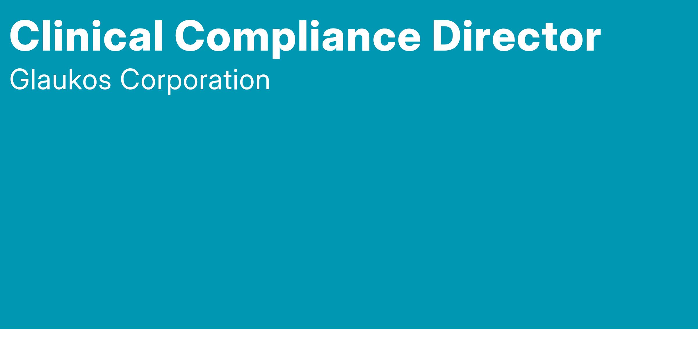 The Director, Clinical Compliance, based in Aliso Viejo, CA., will be responsible for developing, leading, implementing and conducting strategies and activities to assure Glaukos Clinical Research remains in compliance with applicable regulations and laws maintaining a constant state of audit readiness.