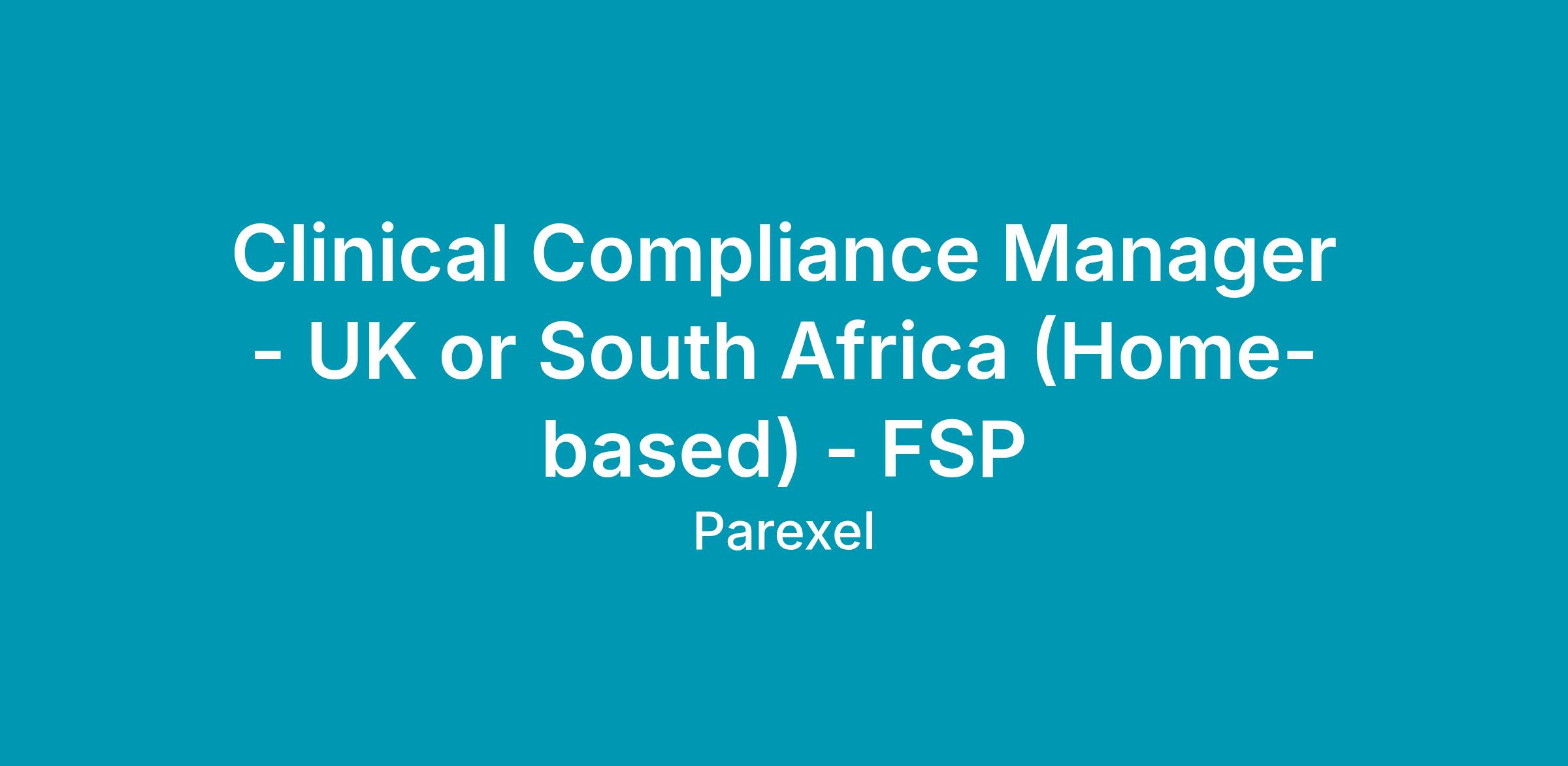 Parexel is currently registering interest for a Clinical Compliance Manager to join us in either the UK or South Africa, dedicated to a single sponsor.