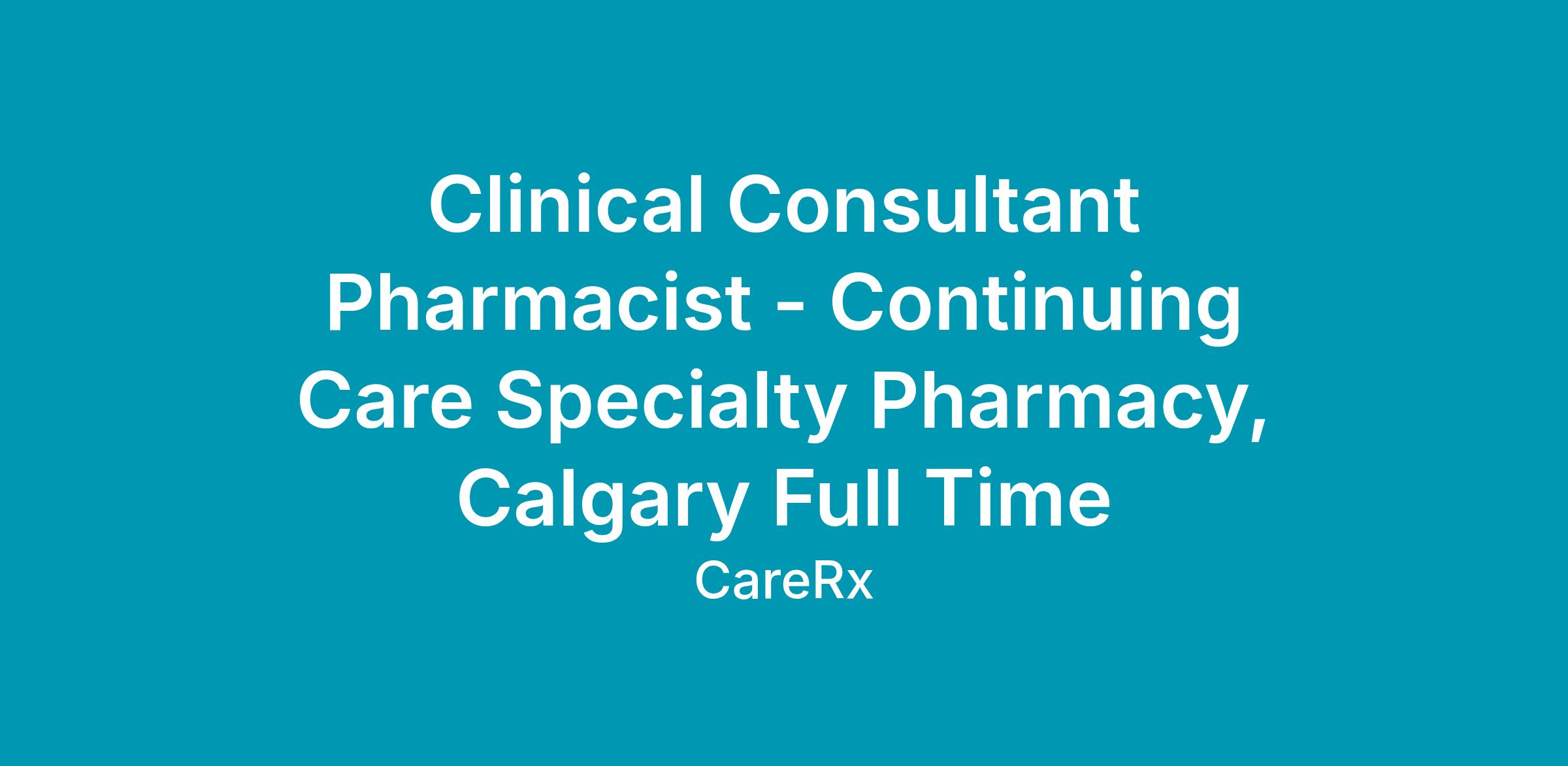 CareRx is looking for a Full Time Clinical Consultant Pharmacist to join our Calgary team. The Clinical Consultant Pharmacist is responsible for maintaining continuity of care for clientele through collaboration between onsite physicians, nursing staff, and other health providers at long term care, supportive living, and other congregate living communities. The Clinical Consultant Pharmacist is responsible for completing clinical pharmacy activities in alignment with the Continuing Care Health Service Standards, site policies, internal CareRx policies, and the Ministerial Order for Clinical Pharmacy Services.