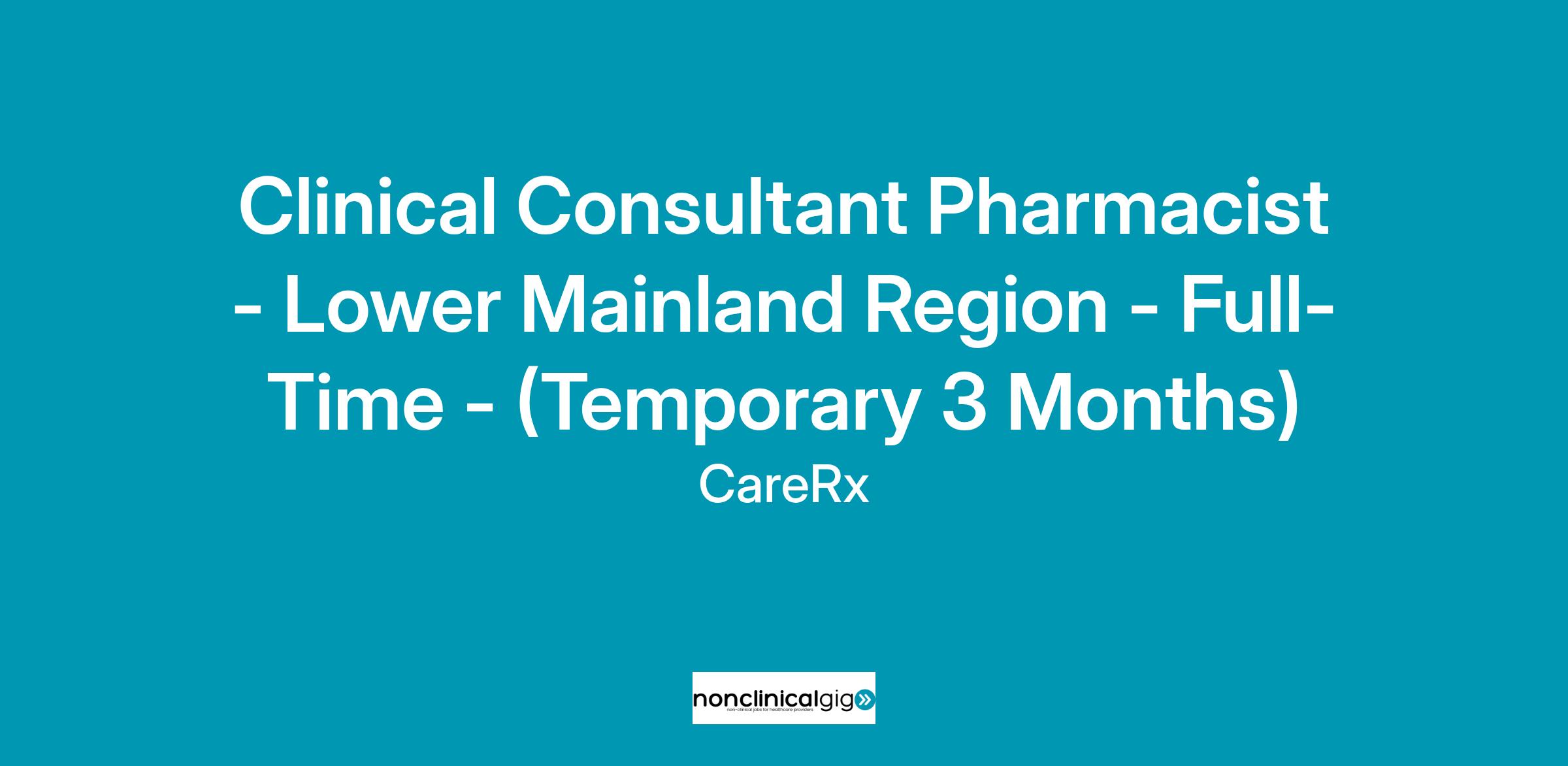 The Clinical Consultant Pharmacist works in partnership with the clinical team, operations, home partners, and other departments in the CareRx organization. This position is Full-Time and is located in the Lower Mainland region of BC. This position is a 3-month role to cover from October to end of December 2025. The Clinical Consultant Pharmacist is responsible for completing clinical pharmacy activities in alignment with the Residential Care Regulations, Community Care & Assisted Living Act, site policies, and internal CareRx policies.