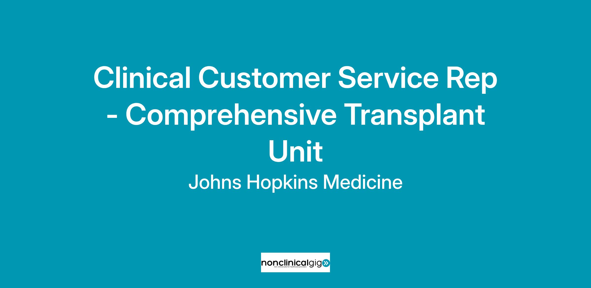 The Clinical Customer Service Representative works as the central point of contact on the care unit for patients, families, visitors and members of the health care team. This is a fast-paced position that requires professional, friendly and efficient performance of the daily duties. The ideal candidate will possess the highest level of Customer Service skills, knowledge of information & computer systems, the ability to work and assist with Nursing staff & Administrative staff, all in the effort to meet the needs of the unit, department in accordance to Johns Hopkins Hospital policy and procedures.