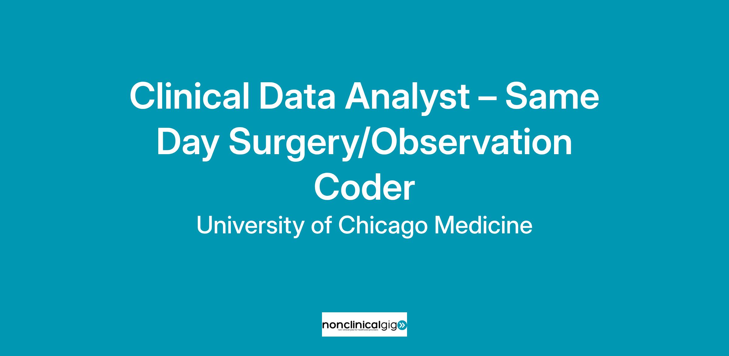 Be a part of a world-class academic health-care system at UChicago Medicine as a Clinical Data Analyst – Same Day Surgery/Observation Coder. This is a remote, work from home opportunity and you may be based outside of the greater Chicagoland area.