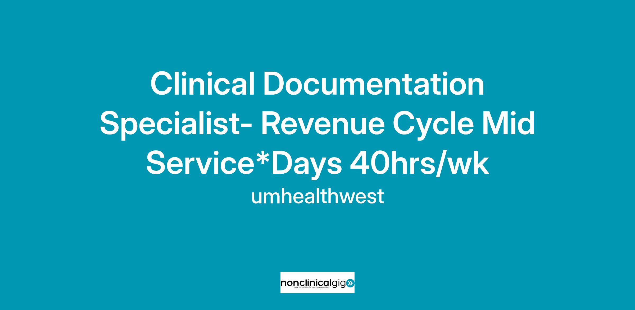 Clinical Documentation Specialist- Revenue Cycle Mid Service*Days 40hrs/wk