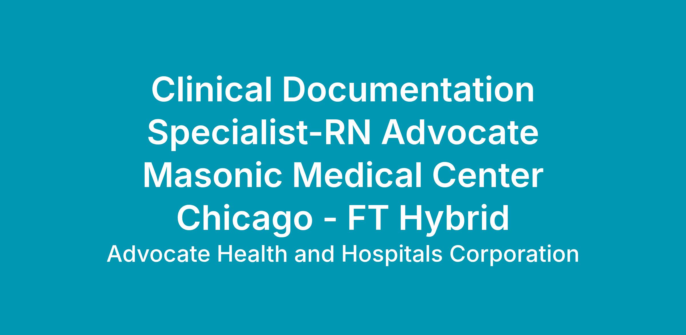 $38.20 - $57.30Position Requirements: Graduate from an accredited school of nursingBSN 5 years relevant clinical experience (For associates in process level 25013 5 years relevant pediatric clinical experience) Clinical documentation improvement experience preferred Ability to prioritize workExcellent communication skillsGood problem solving skillsCritical thinking skillsBasic Computer skillsEffective problem~solver with good interpersonal communication skills verbal and writtenEffective observation analytical and critical thinking skills Current nursing license in the State of Illinois.Certification in clinical documentation improvement preferred. Ability to work in changing environmentAbility to prioritize independently and respond to multiple simultaneous requestsAbility to work under stressful conditions and in difficult situationsMay be exposed to hazardous materials and life threatening diseasesThis position needs to recognize needs and behaviors of specific age groups of patients treated.Extensive knowledge and experience of ICD~10 coding classification system and DRGsnonePurpose: This role will facilitate the modifications of clinical documentation through extensive initial and concurrent interaction with physicians and other members of the healthcare team to support appropriate documentation of the clinical severity and risk of mortality is captured for the level of services rendered to select inpatients populations. This role will supports timely accurate and complete documentation of clinical information used for measuring and reporting physician and hospital outcomes and provides education to all members of the health care team on an ongoing basis.Accountabilities:Improves the overall quality and completeness of clinical documentation by performing chart reviews using clinical documentation guidelines based on accepted standards evidenced based practice and current regulatory requirements.Educates all internal customers on clinical documentation opportunities codiOur Commitment to You: