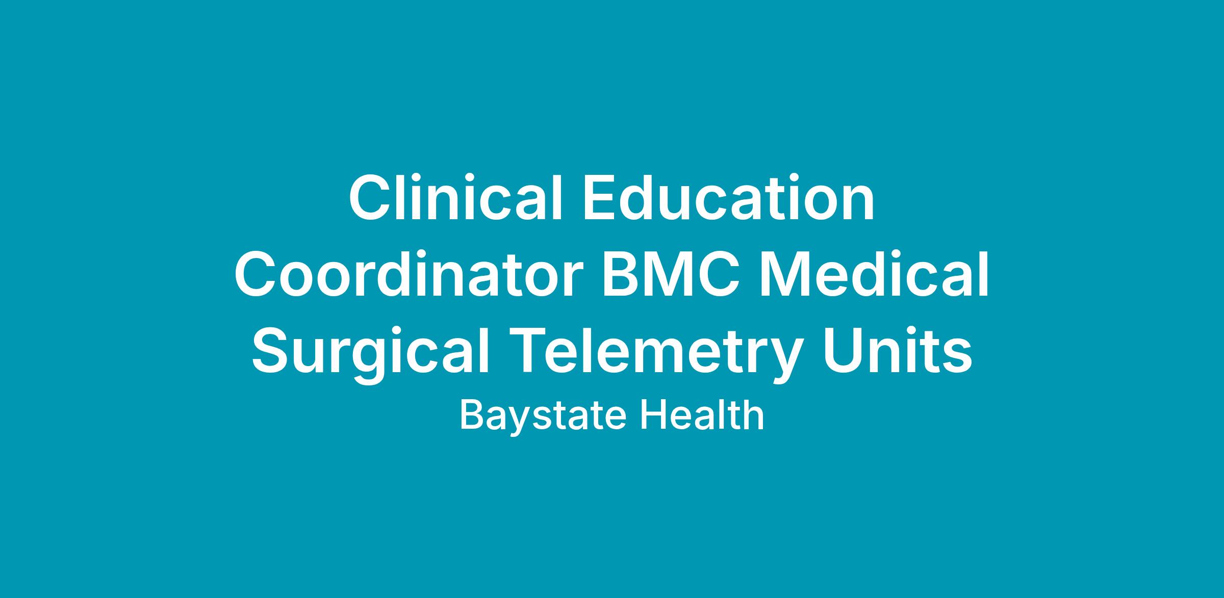Baystate Health, western Massachusetts’s premier healthcare provider, and home to Baystate Medical Center (BMC), a Magnet Hospital for Nursing Excellence seeks a Full Time Registered Nurse Clinical Education Coordinator supporting Medical Surgical Telemetry units Springfield 3,1400, 2400, 6400 (no tele), and Daly 3B (short stay observation).