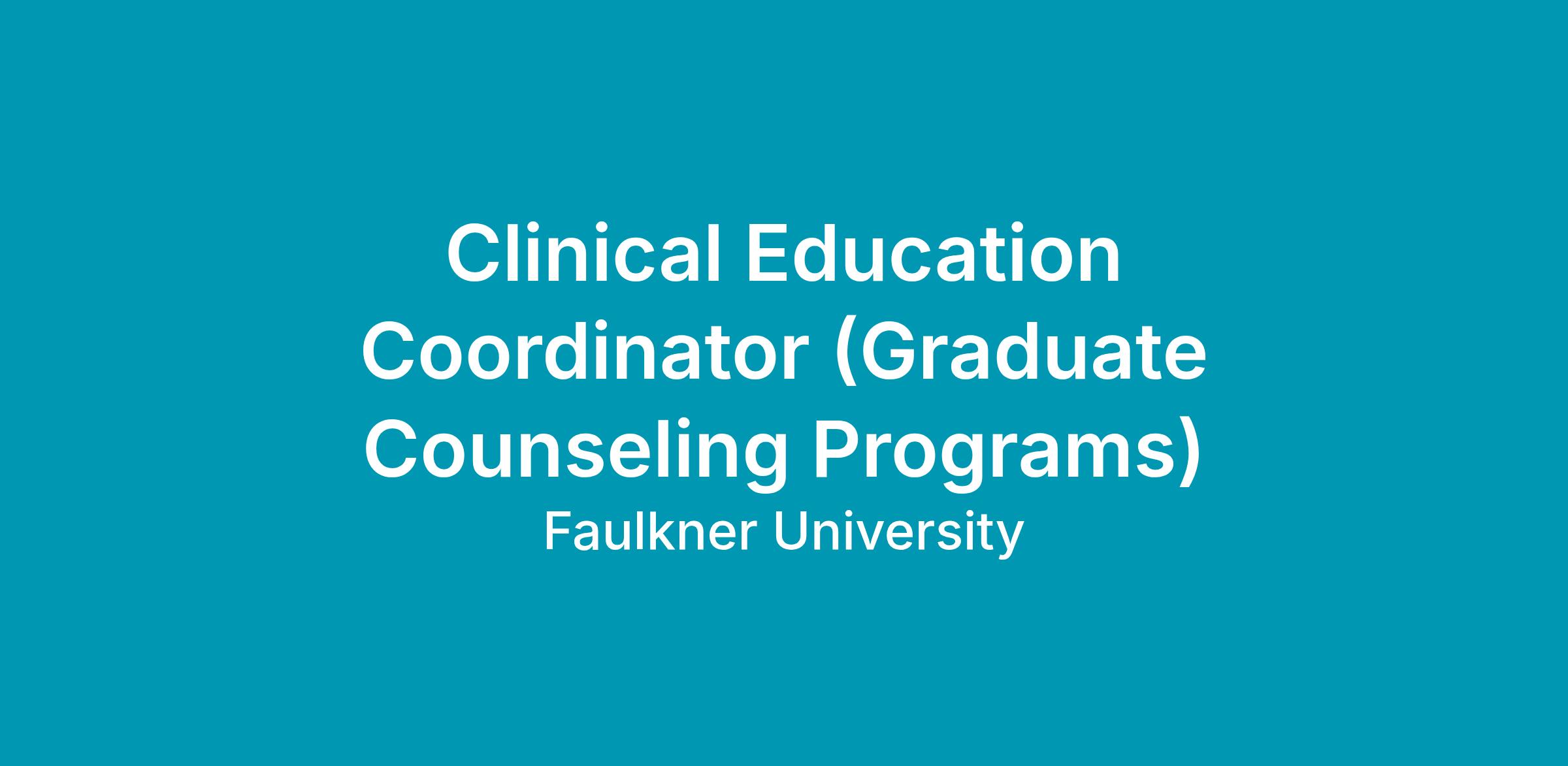 Faulkner University is seeking a qualified individual to serve as Clinical Education Coordinator for the Graduate Counseling Programs. The selected individual will be responsible for providing administrative, accreditation, and office support for teaching and clinical activities while assisting with student admission and retention efforts. This position also provides oversight of clinical placements and assists with field placements for students. Faulkner University is a Christian university affiliated with the churches of Christ.