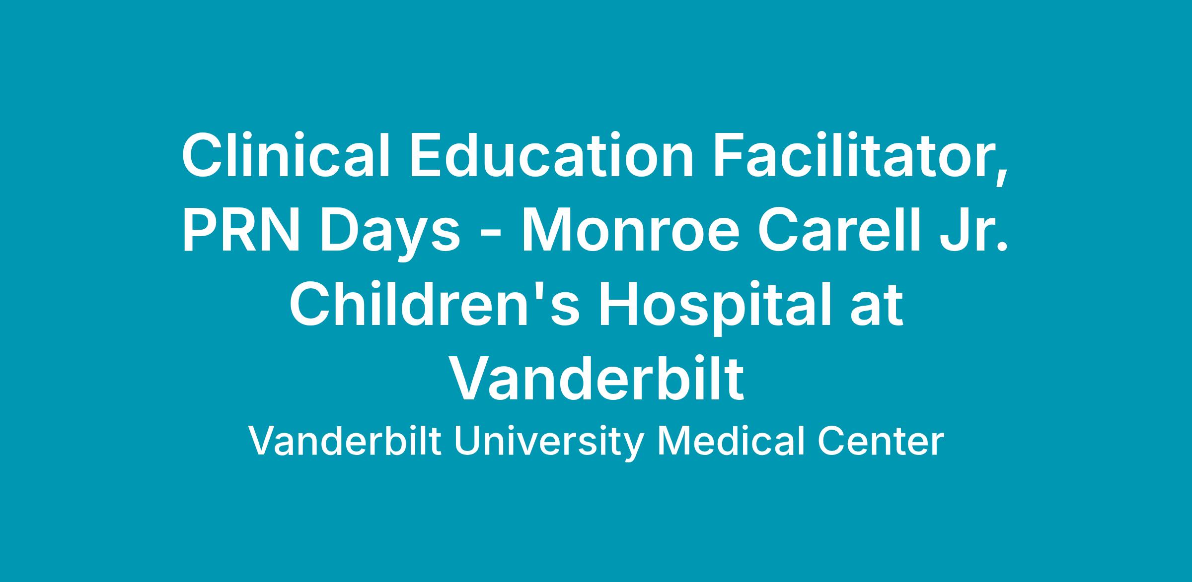 Graduate of an approved discipline specific programVanderbilt Health is committed to fostering an environment where everyone has the chance to thrive and is committed to the principles of equal opportunity. EOE/Vets/Disabled.