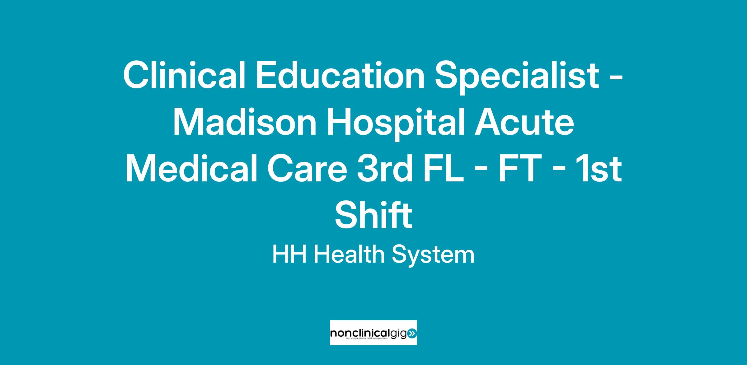 Clinical Education Specialist - Madison Hospital Acute Medical Care 3rd FL - FT - 1st Shift