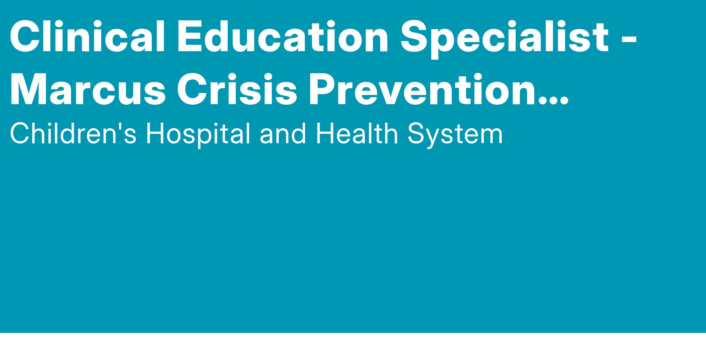 In this role, you will collaborate closely with clinicians, educators, and behavioral health professionals to deliver the Marcus Crisis Prevention Program (MCPP) - an innovative, research-informed approach designed to enhance safety, de-escalation skills and trauma-sensitive care across across Children's Wisconsin.