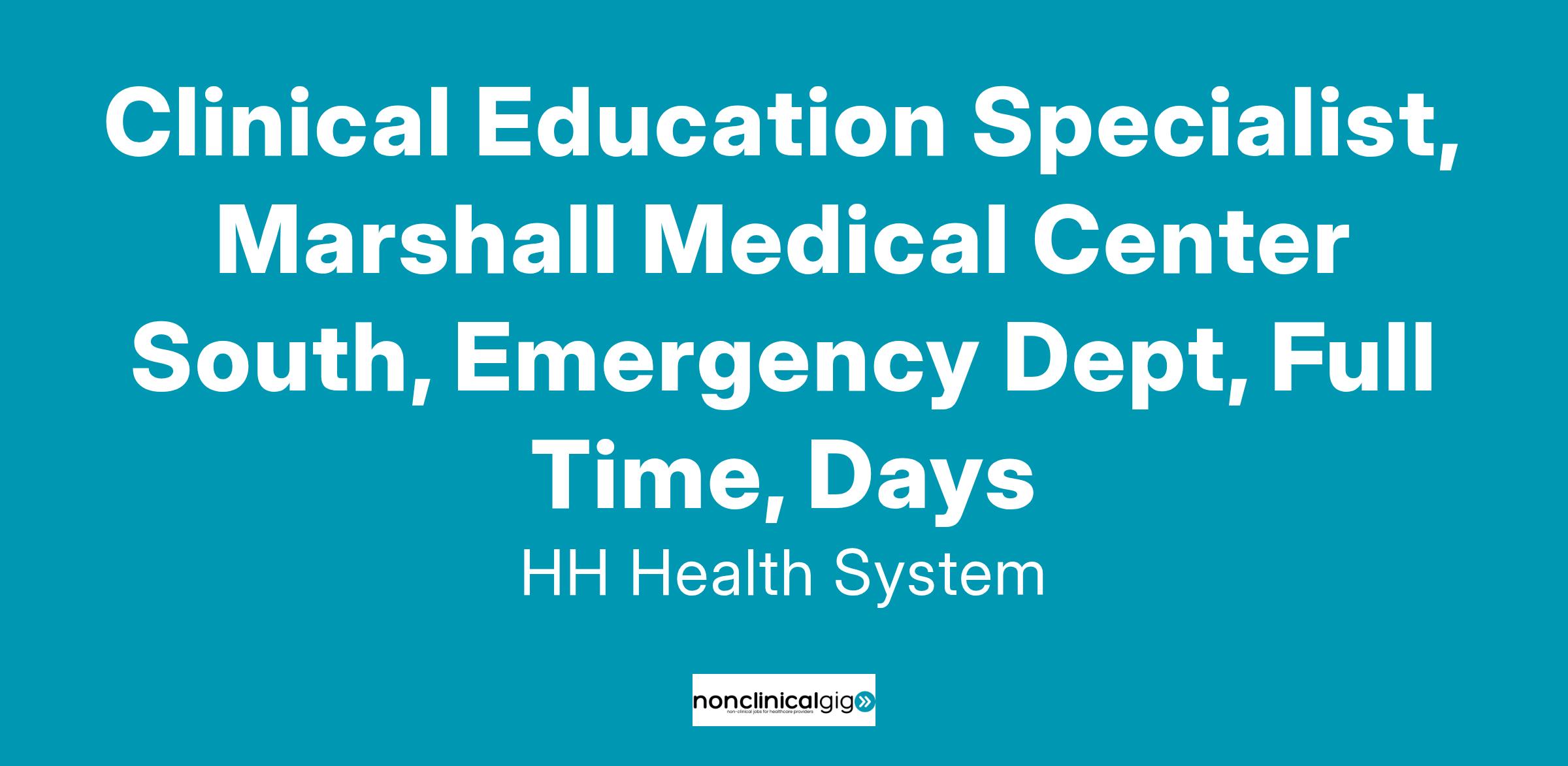 Clinical Education Specialist, Marshall Medical Center South, Emergency Dept, Full Time, Days