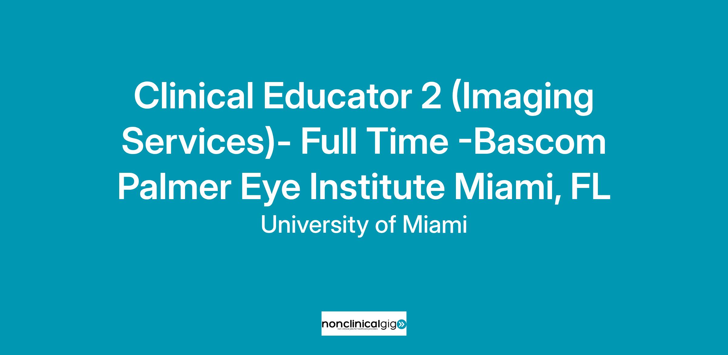 The University of Miami, Bascom Palmer Eye Institute, has an exciting full time opportunity for a Clinical Educator 2, in the Department of Ophthalmic Imaging. The Clinical Educator 2 provides clinical education to patient care staff. The incumbent is responsible for the needs and assessment, planning/development, delivery, coordination and evaluation of a clinical education program/s. Provides support to the learner community and supports ongoing initiatives.