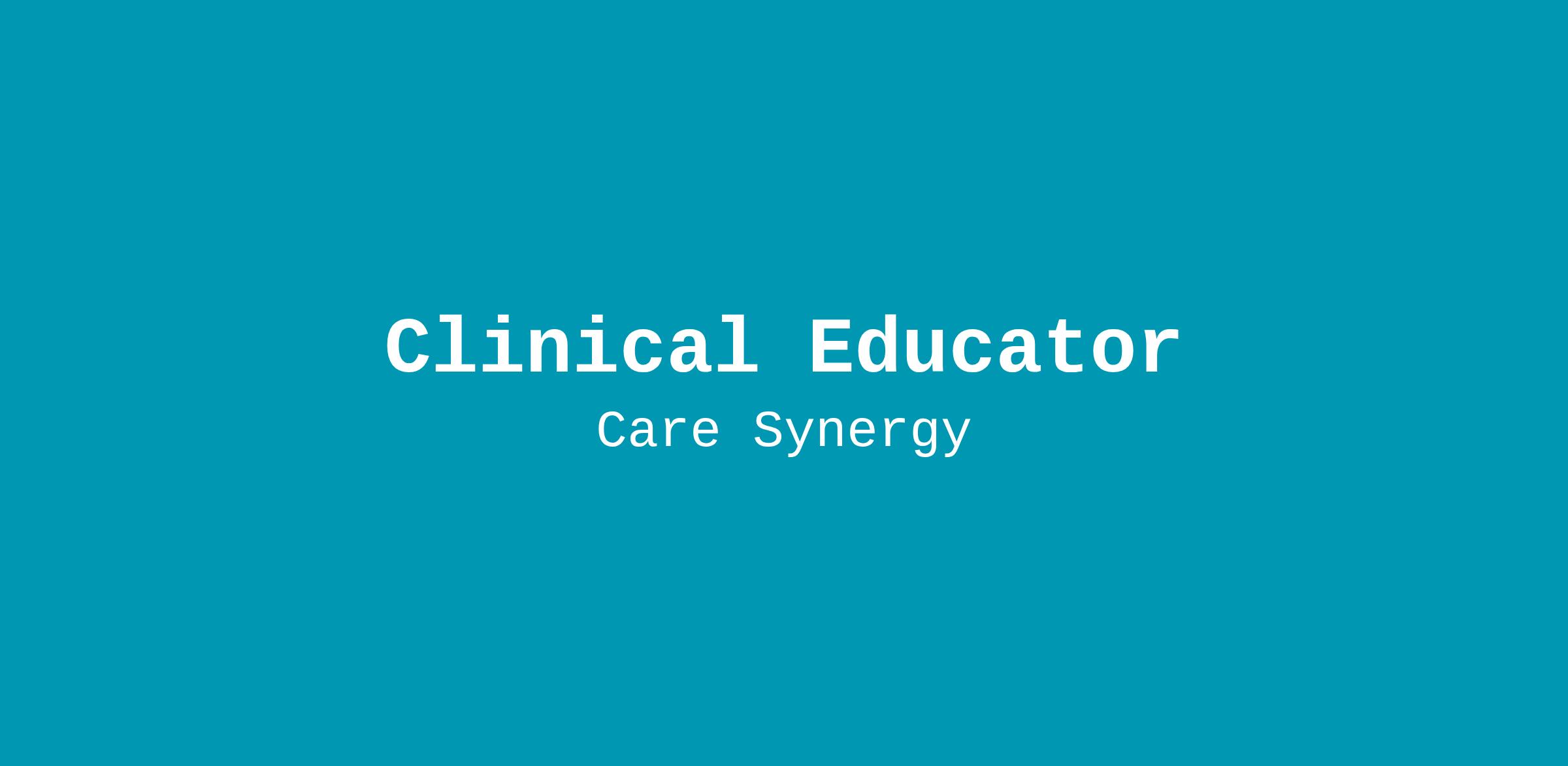 Care Synergy has an immediate opening for a Clinical Educator. Must have an RN license.