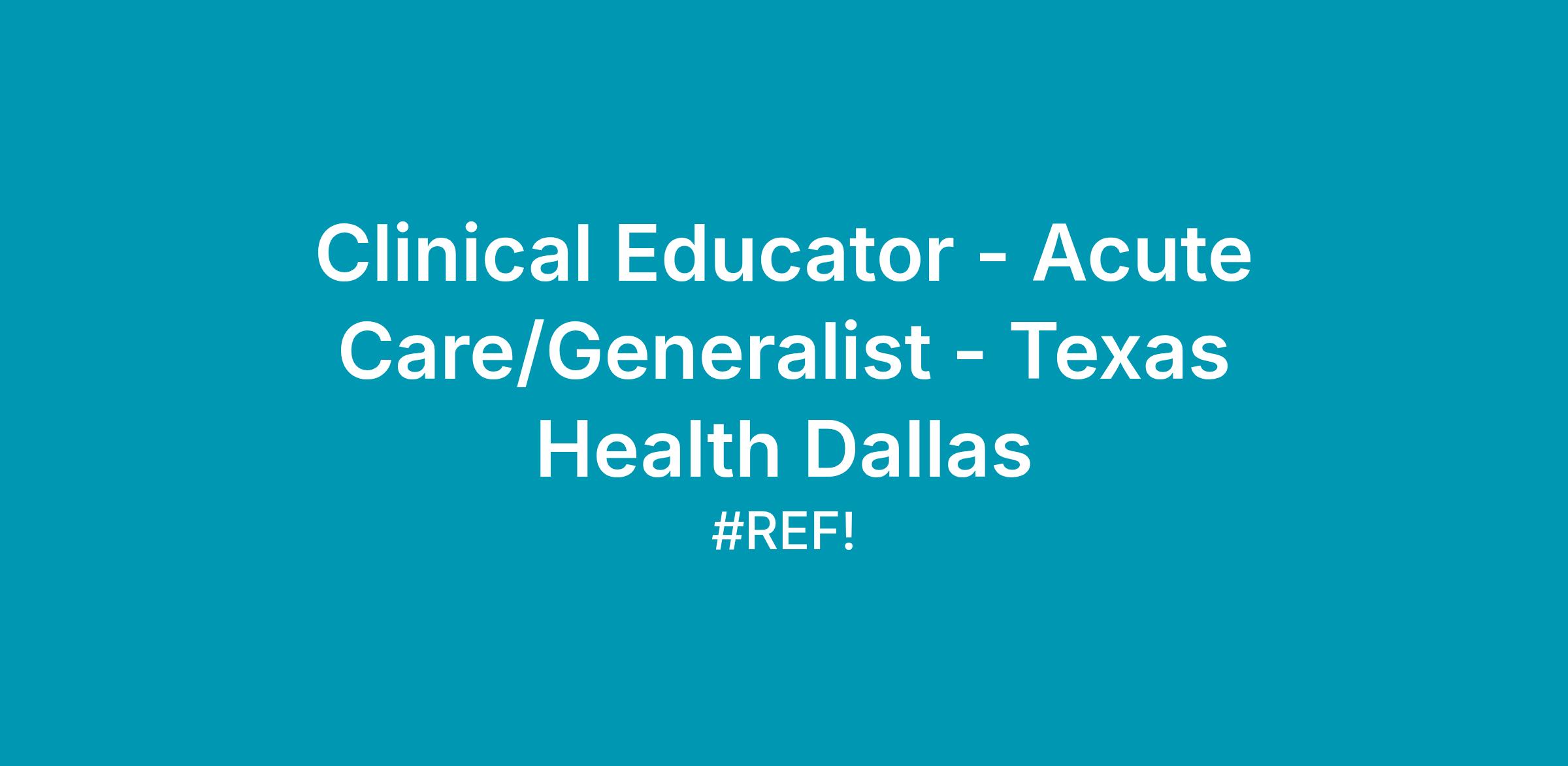 Clinical Educator - Acute Care/Generalist